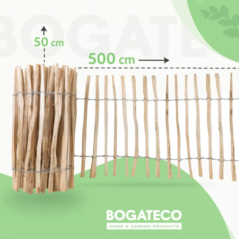 Płot łupany, to naturalny produkt, który może być używany jako ogrodzenie działek, osłona grządek warzywnych lub podpora dla roślin pnących. Posiada kilka sztachetek dłuższych dla łatwego montażu – po prostu wbij płotek w ziemię.