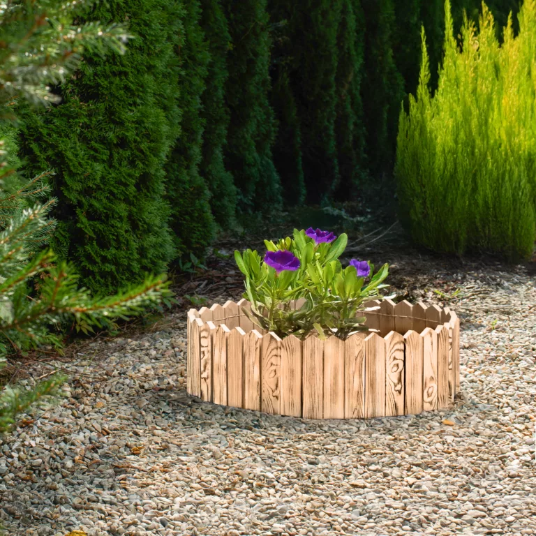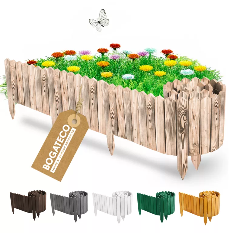 Rollborder drewniany to praktyczne i dekoracyjne rozwiązanie, które pozwala w prosty sposób uporządkować przestrzeń ogrodu. Doskonale sprawdzi się jako obrzeże rabat, ścieżek czy trawnika, a także jako naturalna granica między różnymi strefami ogrodu. Dzięki elastycznej konstrukcji z łatwością dopasujesz go do prostych i krętych linii, a nawet do nierównego podłoża, co daje dużą swobodę aranżacyjną. Każdy rollborder powstaje w Polsce – bezpośrednio w naszej pracowni. Do jego produkcji wykorzystujemy wyłącznie naturalne drewno jodłowe, które jest impregnowane w celu zwiększenia odporności na wilgoć, pleśń i szkodniki. Sztachetki połączone są podwójnym, ocynkowanym drutem stalowym, dzięki czemu cała konstrukcja jest stabilna, a jednocześnie elastyczna. To ekologiczna i trwała alternatywa dla plastikowych obrzeży, idealna dla osób ceniących naturalne rozwiązania. Dzięki prostemu systemowi montażu – wystarczy wbić go w ziemię – rollborder można szybko zainstalować, a w razie potrzeby również łatwo przenieść w inne miejsce. Kilka sztachetek posiada zaostrzone końce, co dodatkowo ułatwia osadzenie w podłożu.