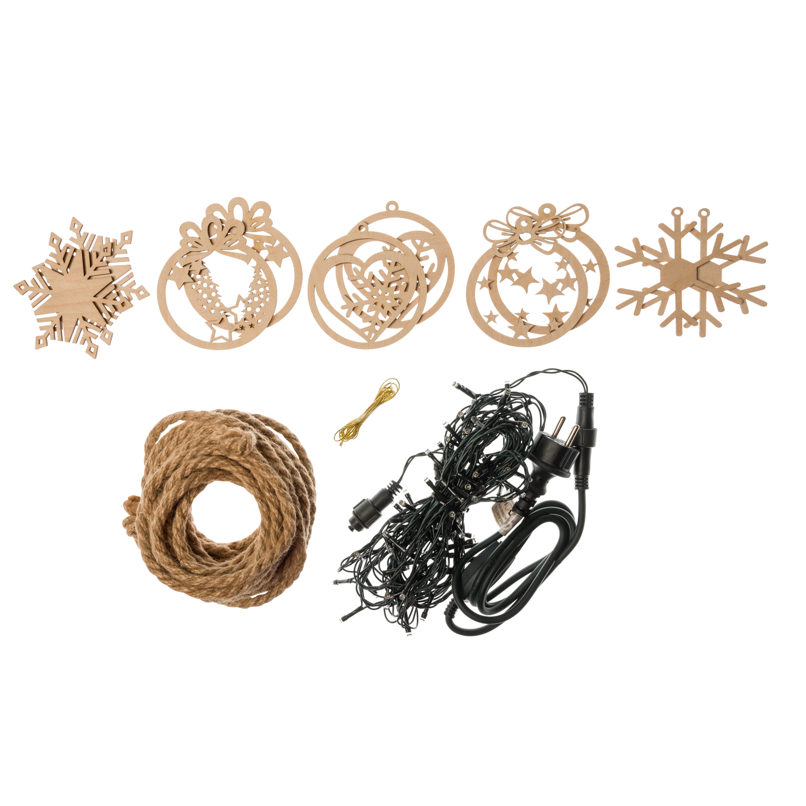 Łatwy montaż – wystarczy zawiesić choinkę w dowolnym miejscu i udekorować ją lampkami, ozdobnym sznurem oraz świątecznymi ozdobami. Elementy te znajdują się w zestawie. Od razu zauważysz niepowtarzalną świąteczną atmosferę.