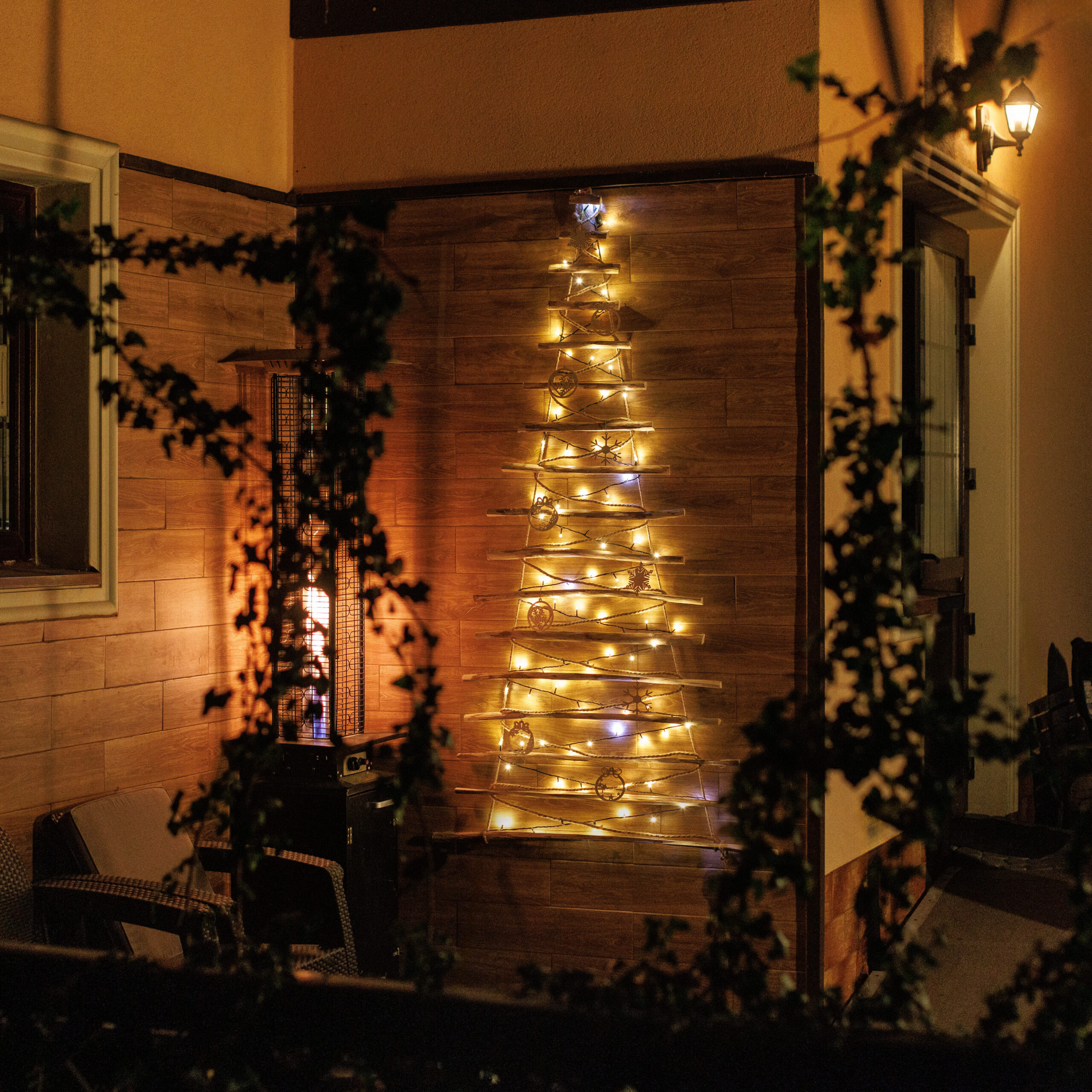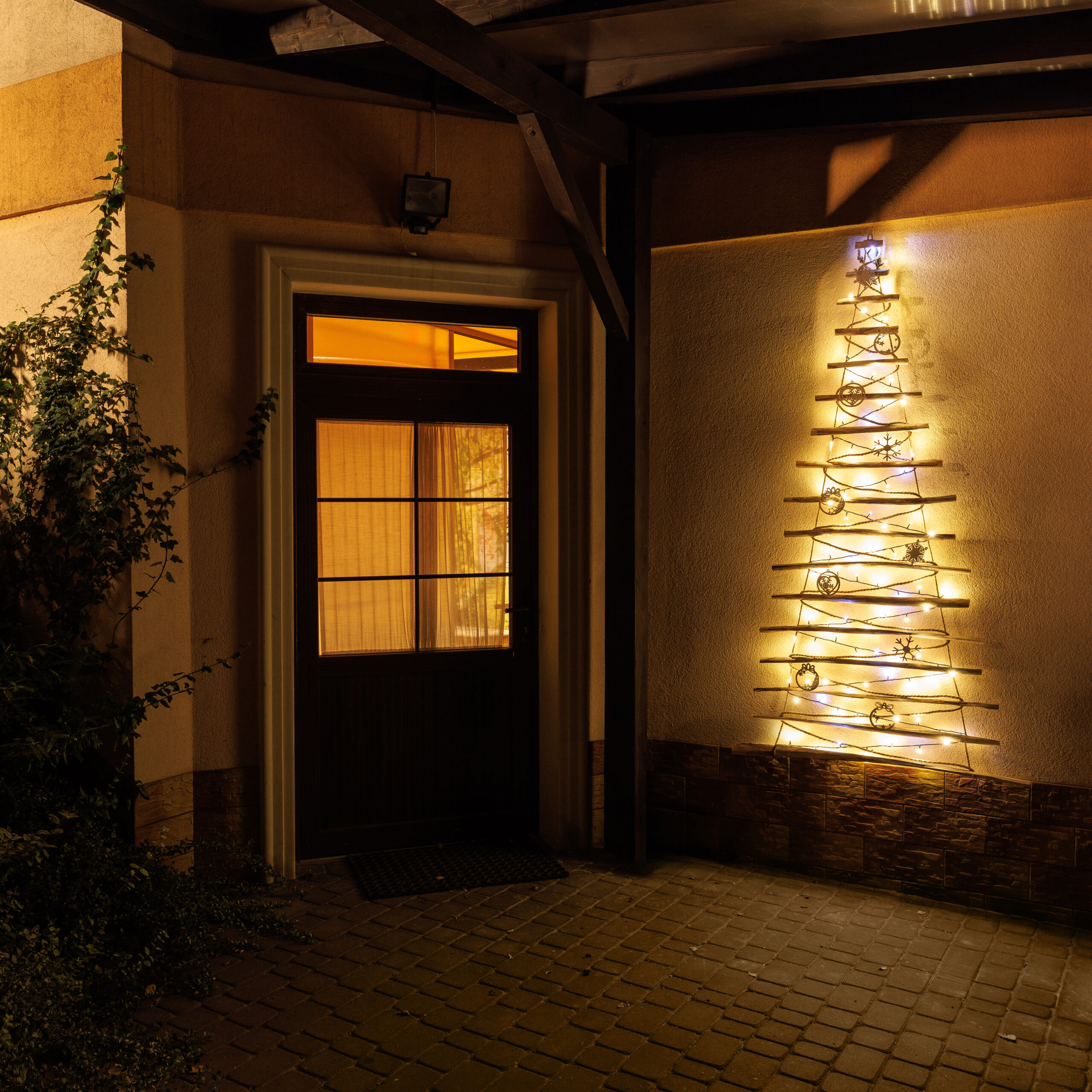 Różnorodne zastosowanie – Choinkę możesz wykorzystać do dekoracji elewacji, ściany czy okna. Można ją także powiesić na balkonie lub drzwiach, doskonale sprawdzi się jako dekoracja płotu. Dzięki zastosowaniu naturalnych materiałów choinka jest przyjazna dla środowiska.