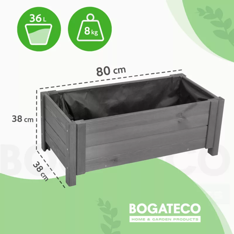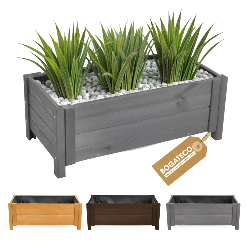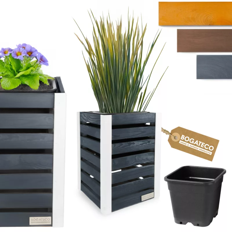 Donica ogrodowa BOGATECO to doskonały wybór dla każdego, kto ceni naturalne materiały i przemyślany design. Wykonanie z wysokiej jakości drewna sosnowego , zapewnia trwałość na lata i opcjonalne zmienne warunki atmosferyczne.