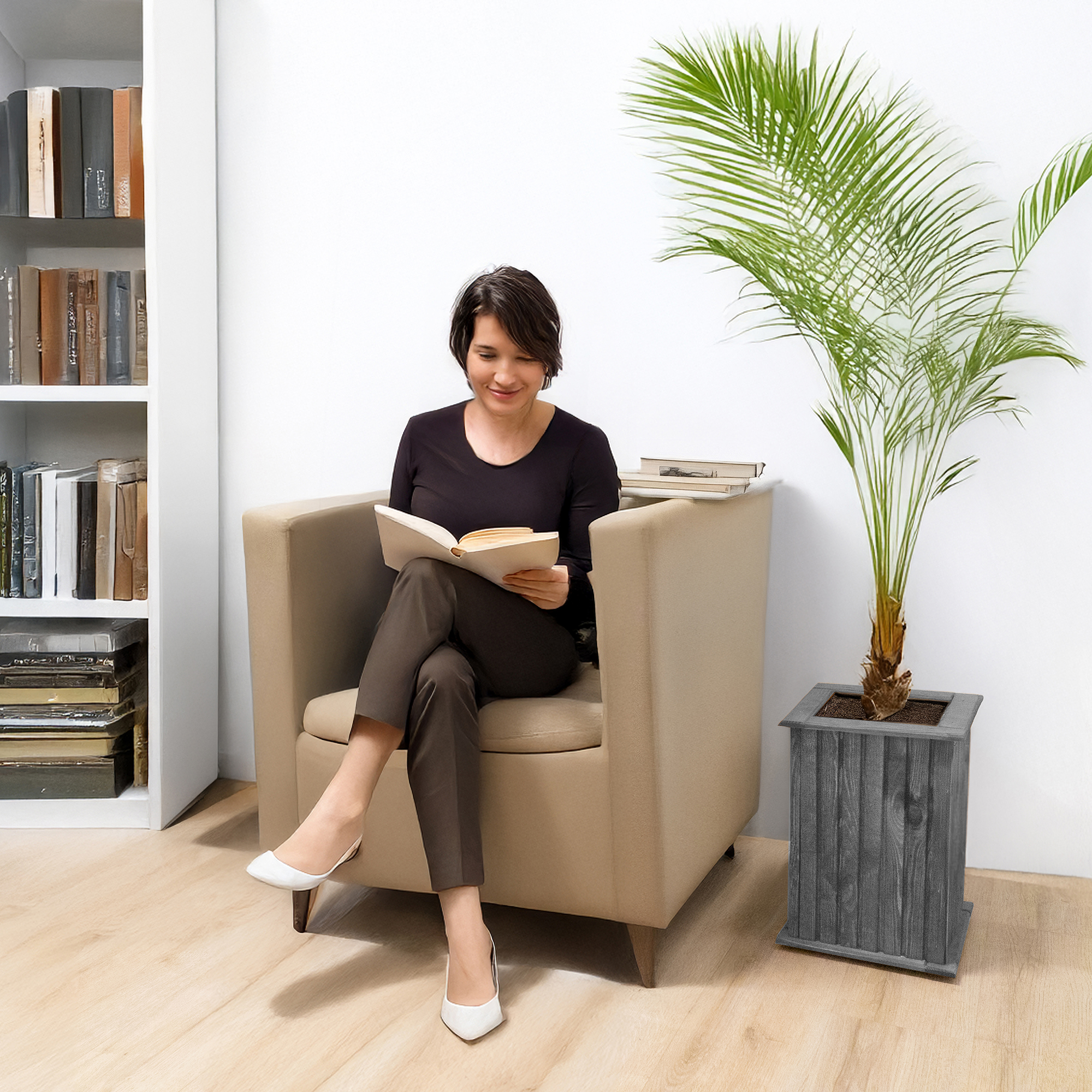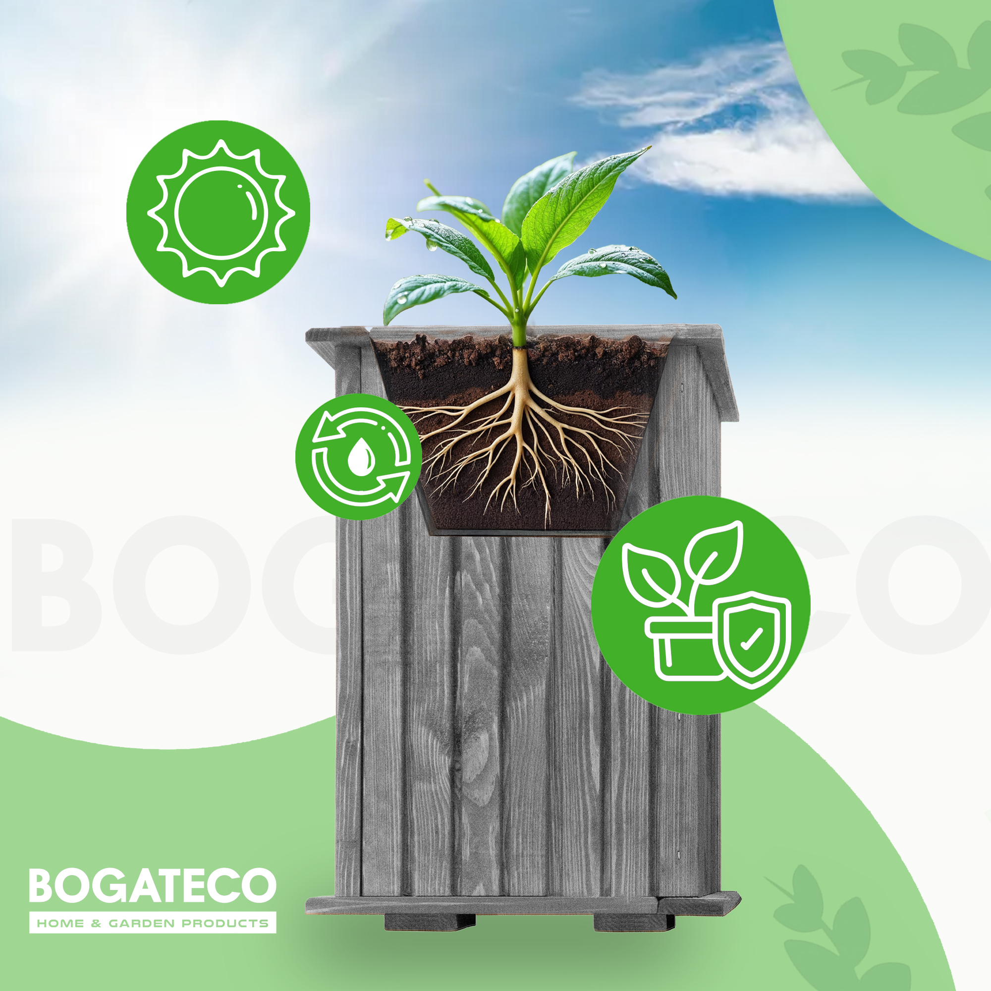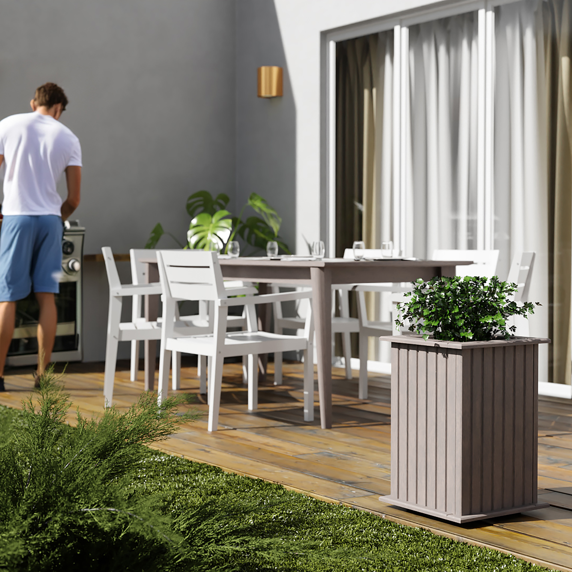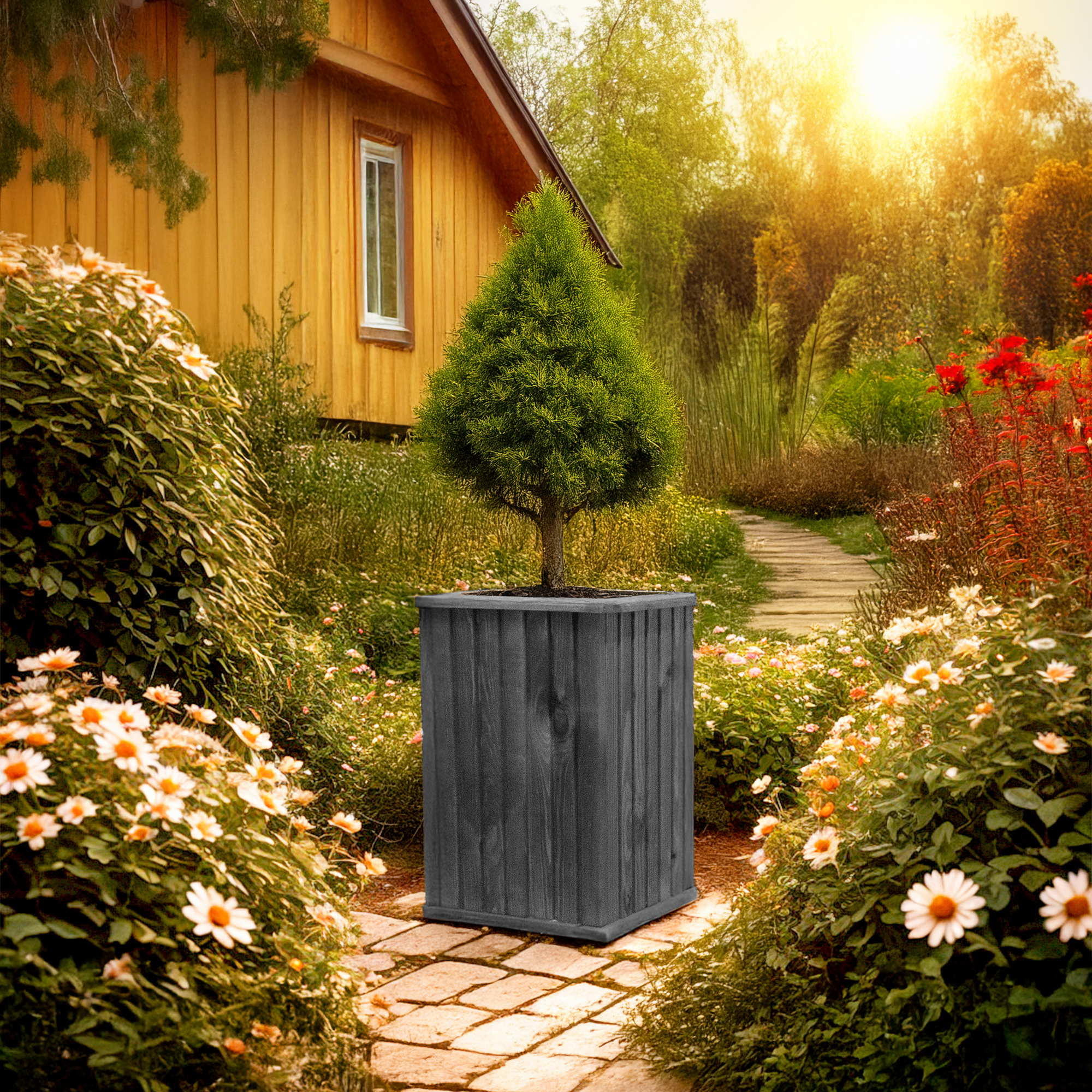 FUNKCJONALNOŚĆ - Donica drewniana umożliwia całoroczną uprawę roślin lub kwiatów. Uniwersalny kształt umożliwia umieszczenie jej w dowolnej częśći ogrodu lub tarasu.