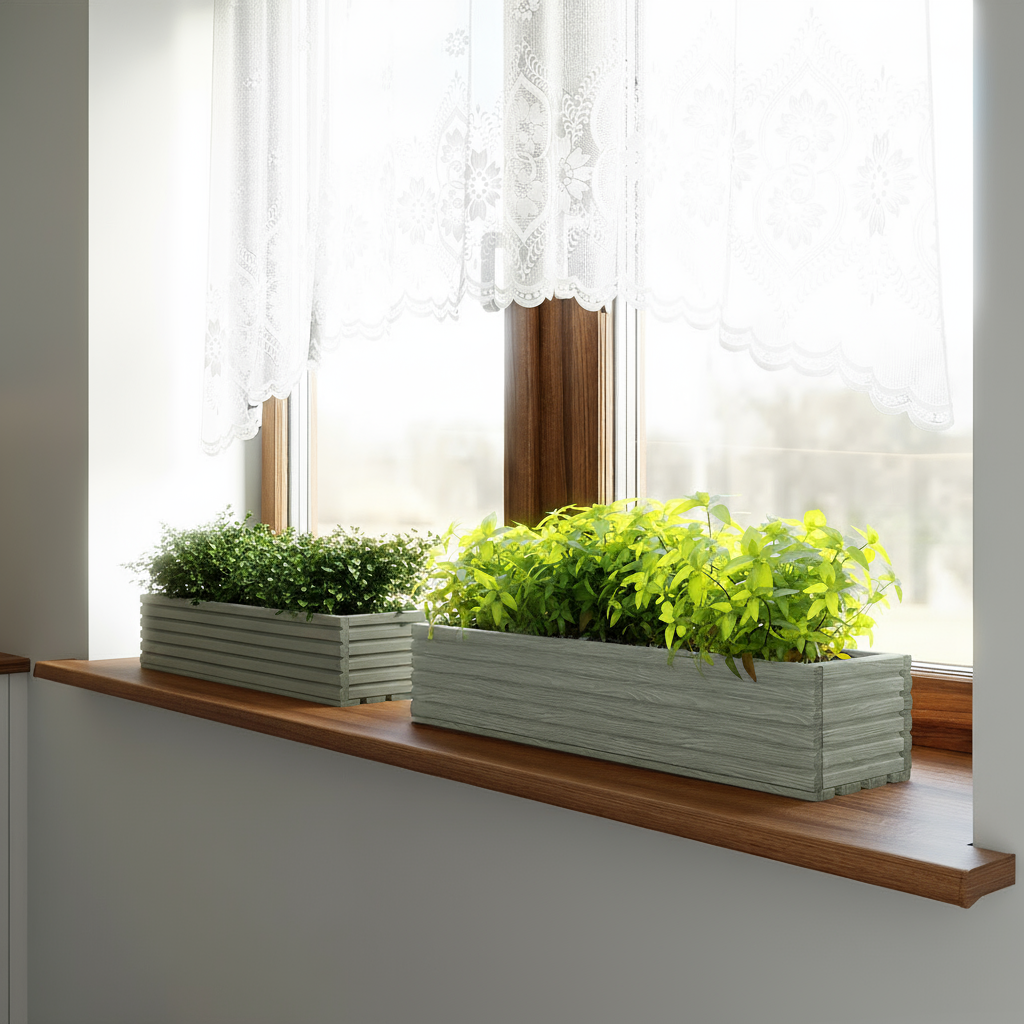 Warto również podkreślić, że kompaktowe wymiary doniczki – długość 64 cm, szerokość 20 cm i wysokość 14 cm – czynią ją niezwykle praktyczną w ustawianiu. Z łatwością zmieści się na parapecie tarasowym, wzdłuż balustrady czy przy wejściu do domu. Jej lekkość ułatwia przenoszenie, dzięki czemu zmiana aranżacji nie stanowi problemu. To czyni z niej produkt uniwersalny, odpowiadający zarówno na potrzeby estetyczne, jak i funkcjonalne.