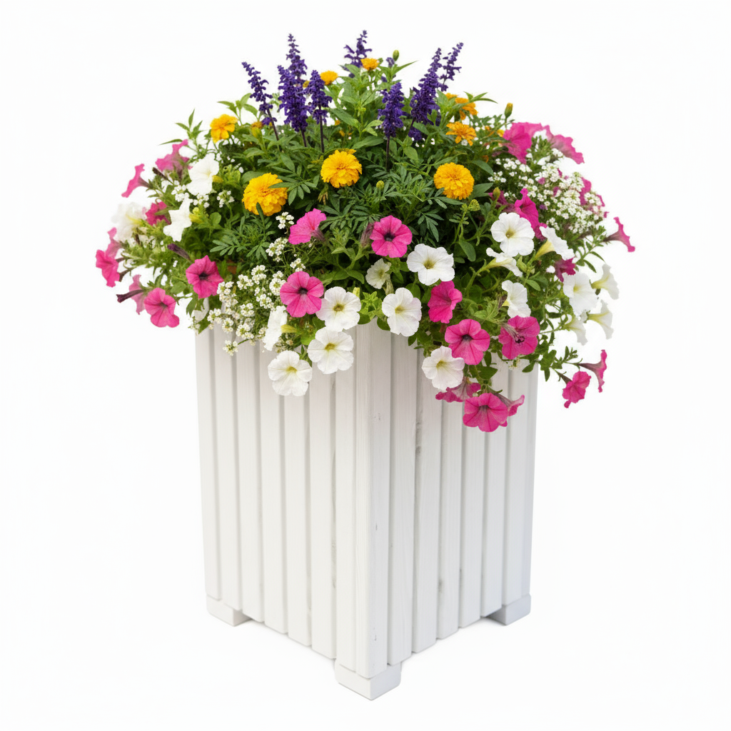 FUNKCJONALNOŚĆ - Donica drewniana umożliwia całoroczną uprawę roślin lub kwiatów. Uniwersalny kształt umożliwia umieszczenie jej w dowolnej częśći ogrodu lub tarasu.