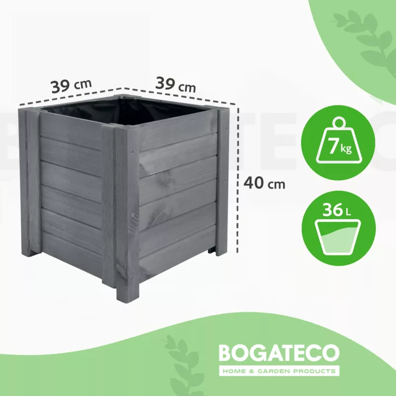 SOLIDNA KONSTRUKCJA - Do produkcji wykorzystano wytrzymałe, solidne drewno, dzięki czemu donica jest odporna na wpływ warunków atmosferycznych takich jak: wilgoć, mróz i promieniowanie UV.