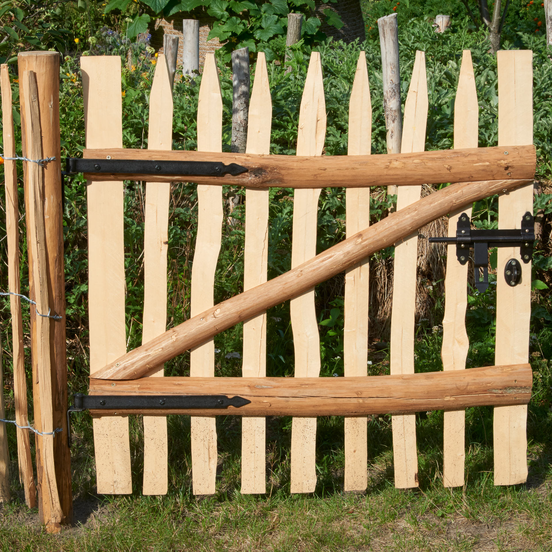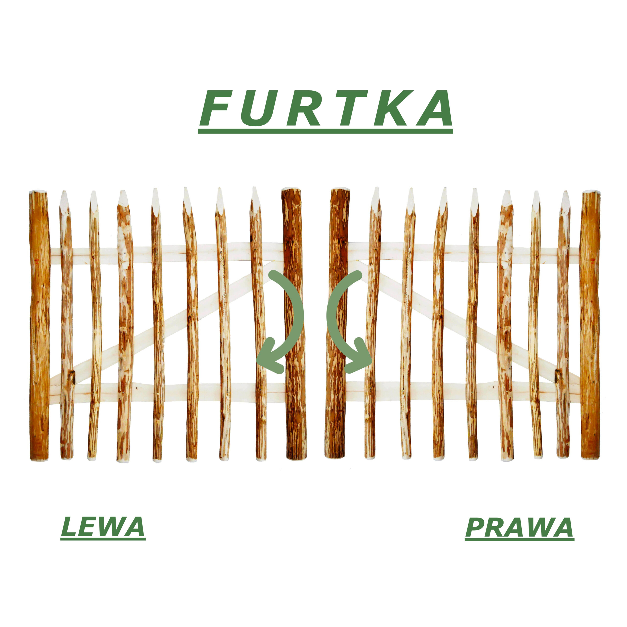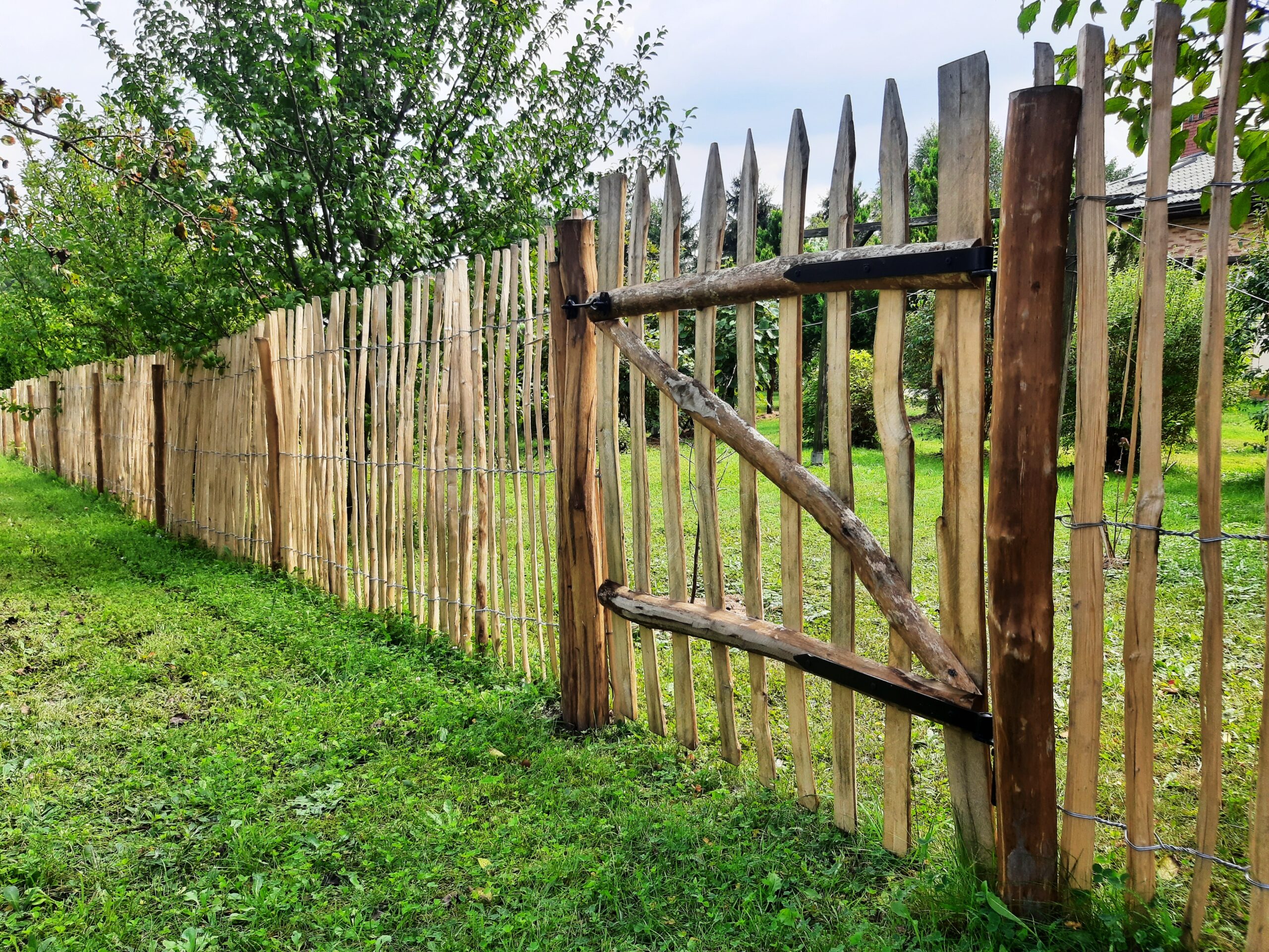 Furtka wykonana z drzewa leszczynowego wraz z akcesoriami.