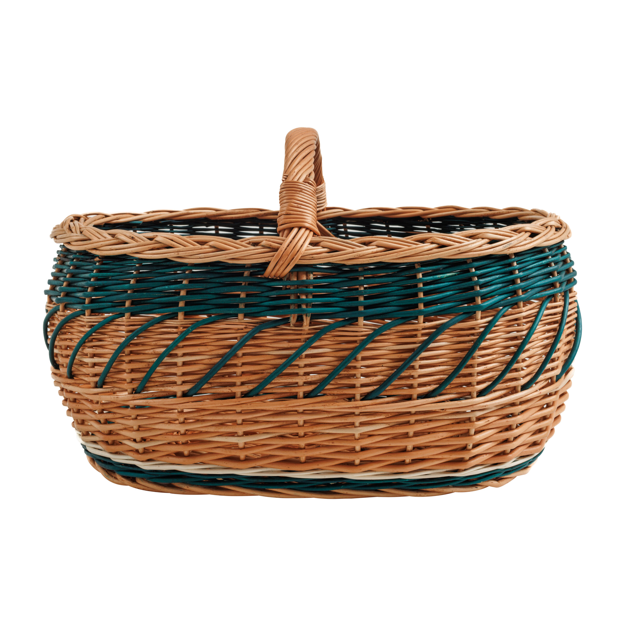 Kosz wykonany w całości ręcznie przez polskich rzemieślników, wykończony precyzyjnym i niezwykle dekoracyjnym splotem „warkocz”.