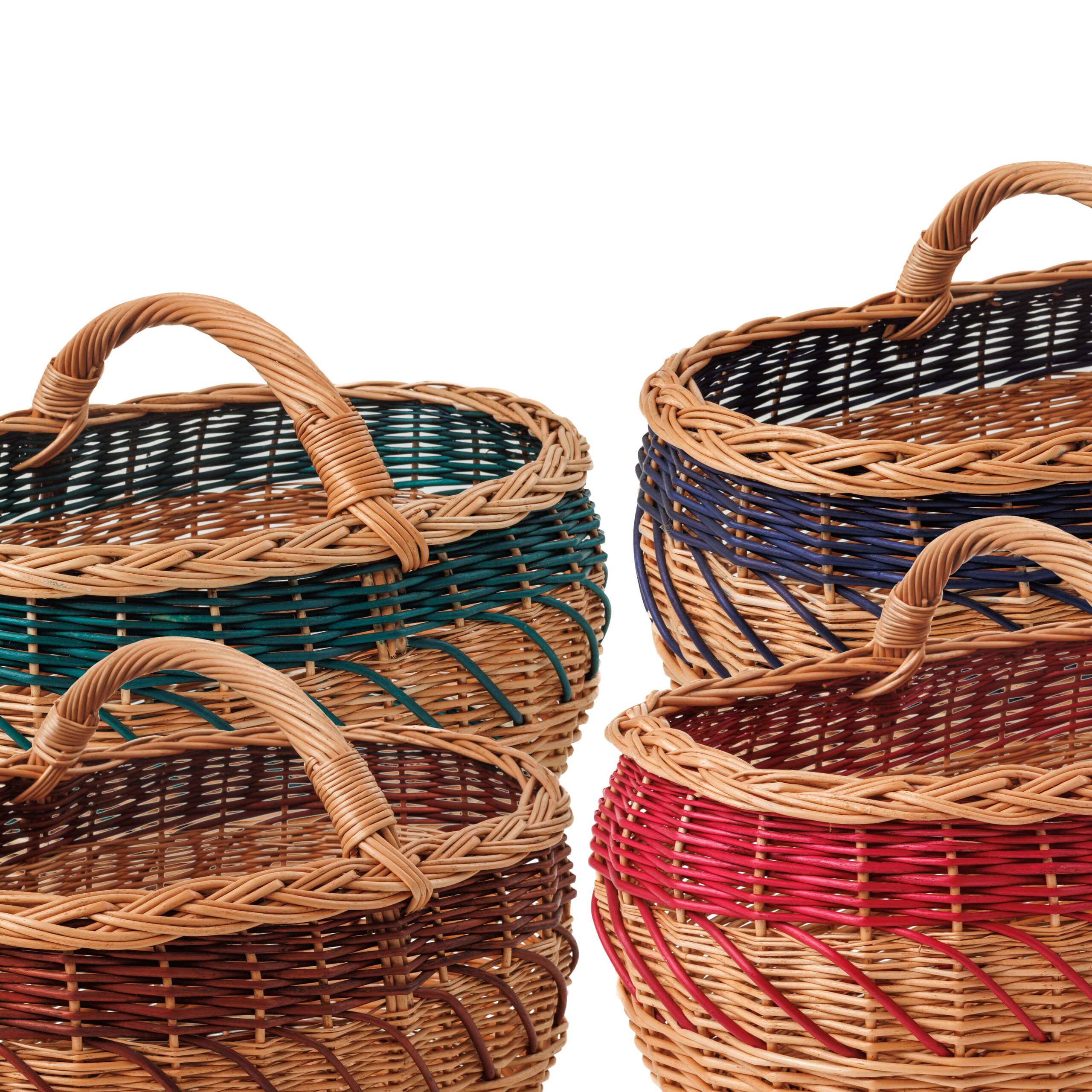 Nasz różnokolorowy kosz wiklinowy zachwyca bogactwem wyboru, oferując cztery eleganckie kombinacje z kolorami : brązowym, zielonym, granatowym, oraz rubinowym. Dzięki tej różnorodności kolorystycznej możesz dopasować kosz do swojego wnętrza lub osobistego stylu z łatwością. Brązowy nadaje się idealnie do nowoczesnych aranżacji, granatowy dodaje nuty elegancji, zielony wprowadza do domu przytulną atmosferę, a rubinowy dodaje subtelny akcent koloru. Bez względu na to, który kolor wybierzesz, nasz kosz zachwyci nie tylko swoim wyglądem, ale także wszechstronnością zastosowań i doskonałą jakością wykonania.