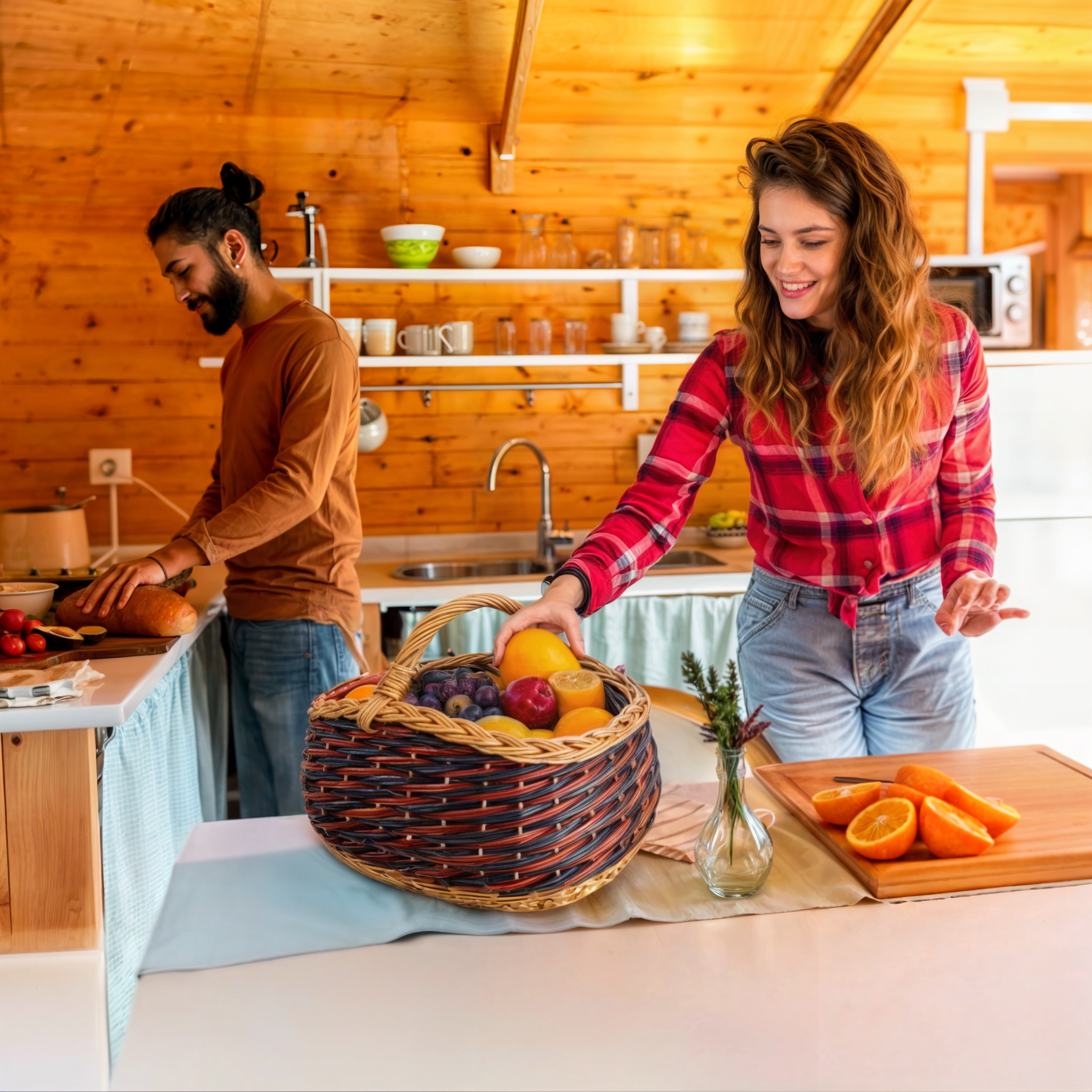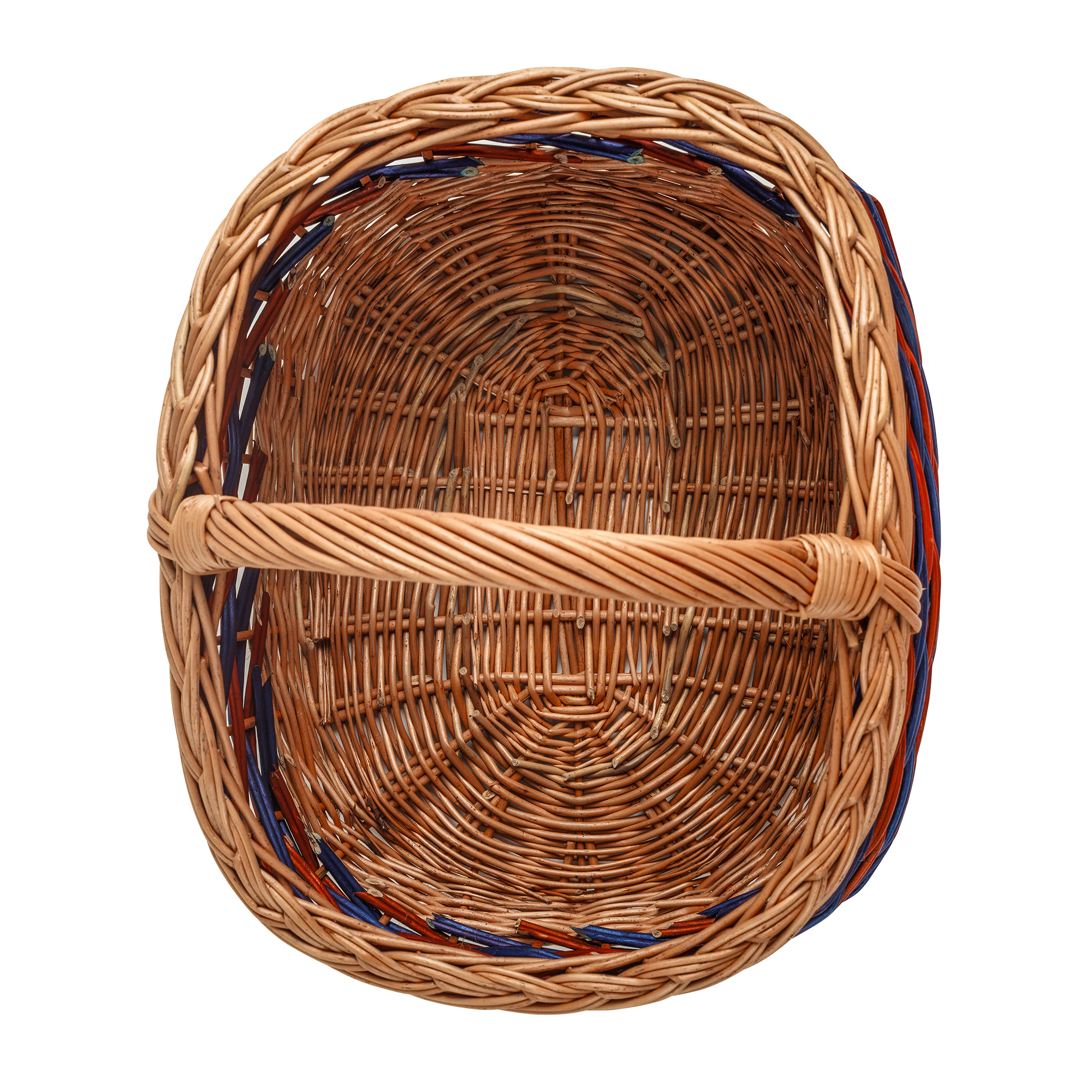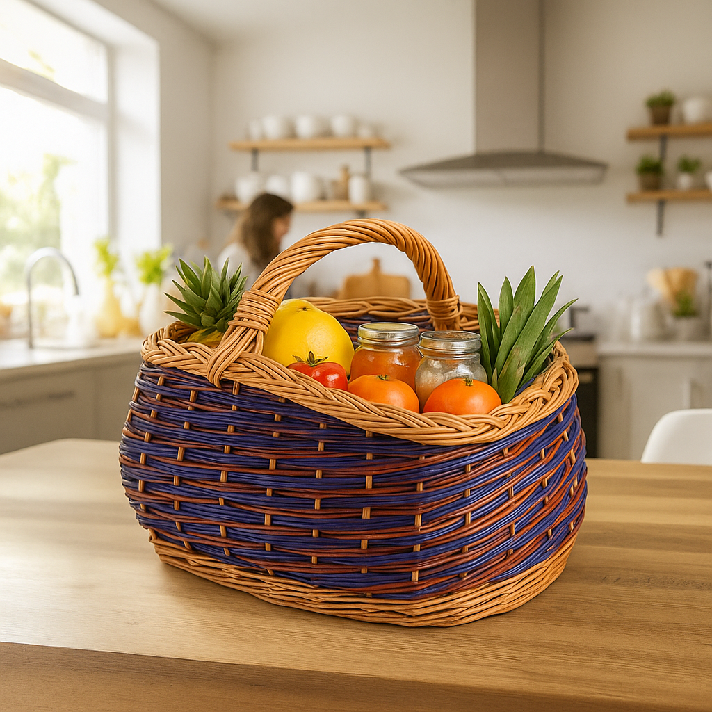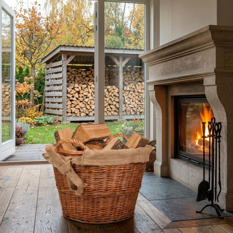 Kosz kominkowy z naturalnej polskiej wikliny z wyściółką jutową. Ręcznie wyplatany przez polskich rzemieślników, z solidną konstrukcją prostokątną i wzmocnionym uchwytem. Pojemny i stabilny, wygodny transport drewna bez brudzenia podłogi.