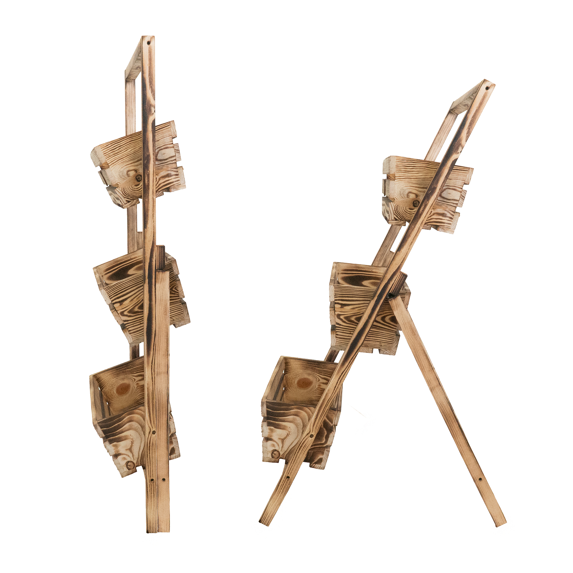 Efekt opalania drewna podkreśla jego strukturę, nadając kwietnikowi wyjątkowy charakter i rustykalny urok. To propozycja dla miłośników stylu vintage i naturalnych materiałów.