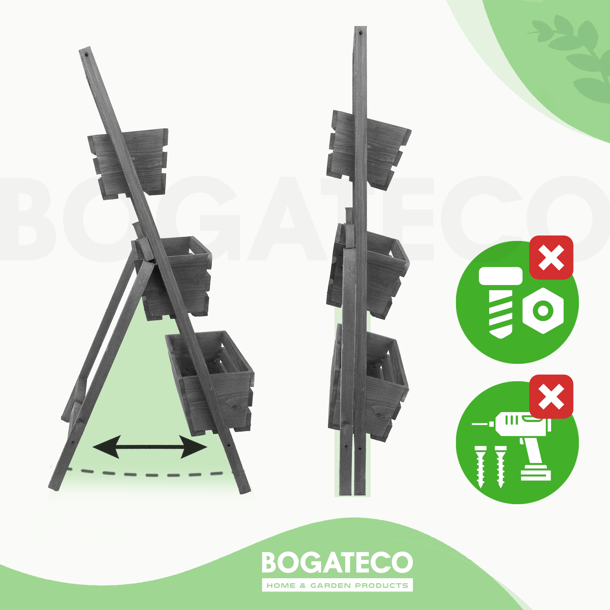 BOGATECO jako producent oferuje produkty łączące estetykę i jakość wykonania – bez kompromisów. Każdy detal kwietnika drabinkowego został zaprojektowany z myślą o codziennym użytkowaniu.
