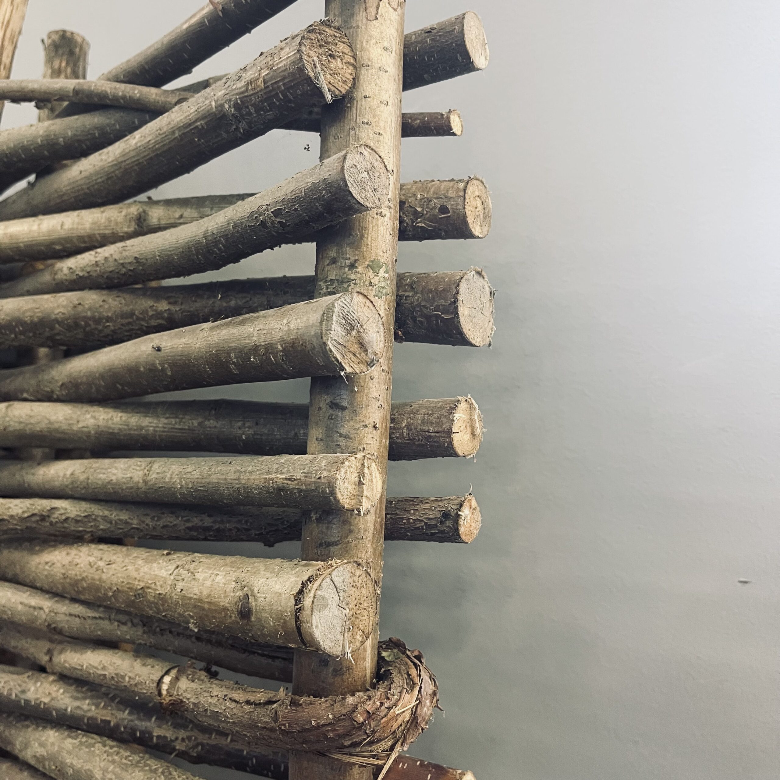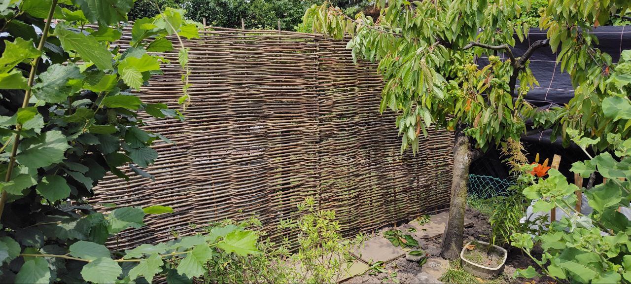 Panel wyplatany z nieokorowanych witek leszczynowych o średnicy 1 – 1,5 cm. Za podstawę konstrukcji odpowiada 7 długich tyczek leszczynowych o średnicy 2-3 cm.