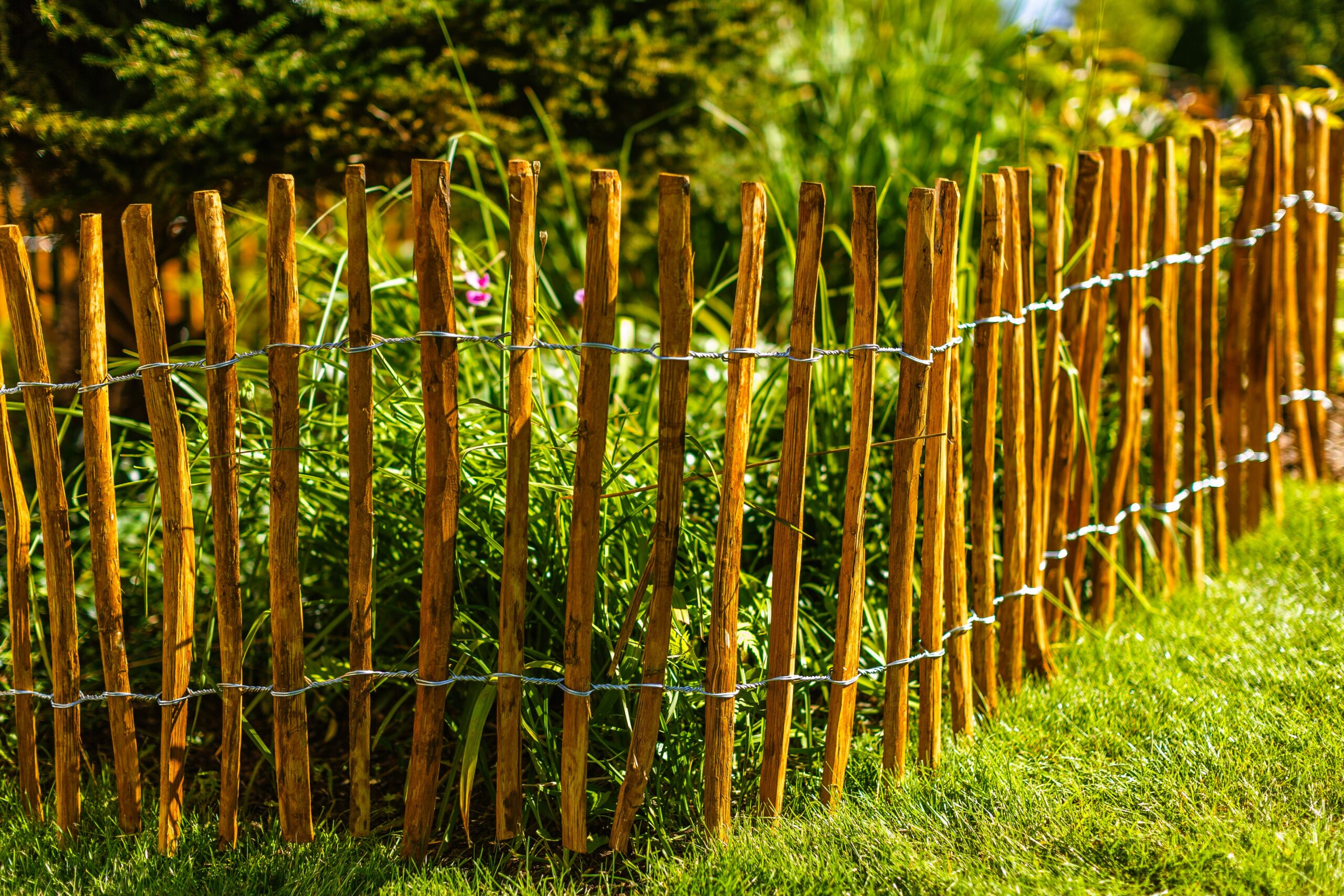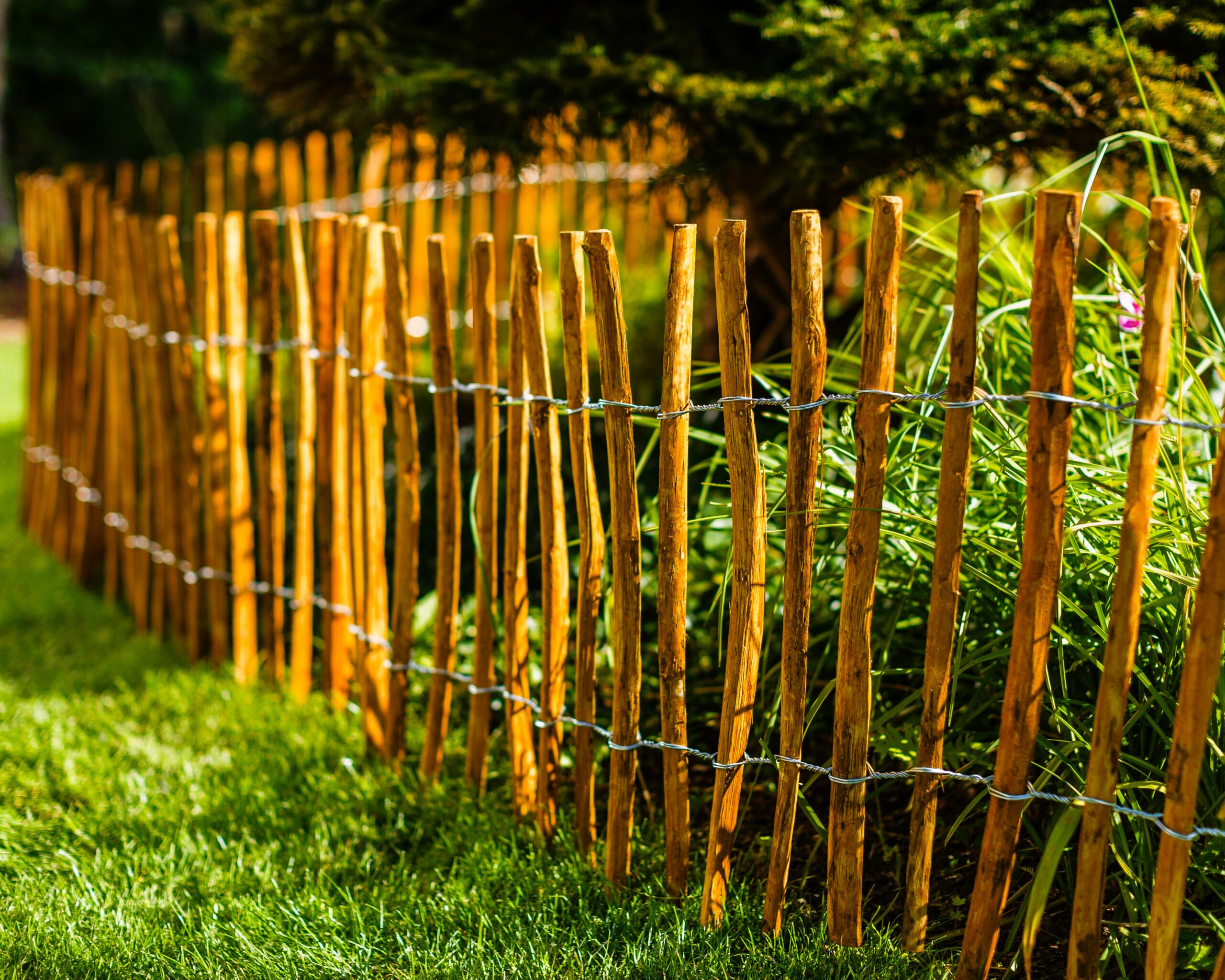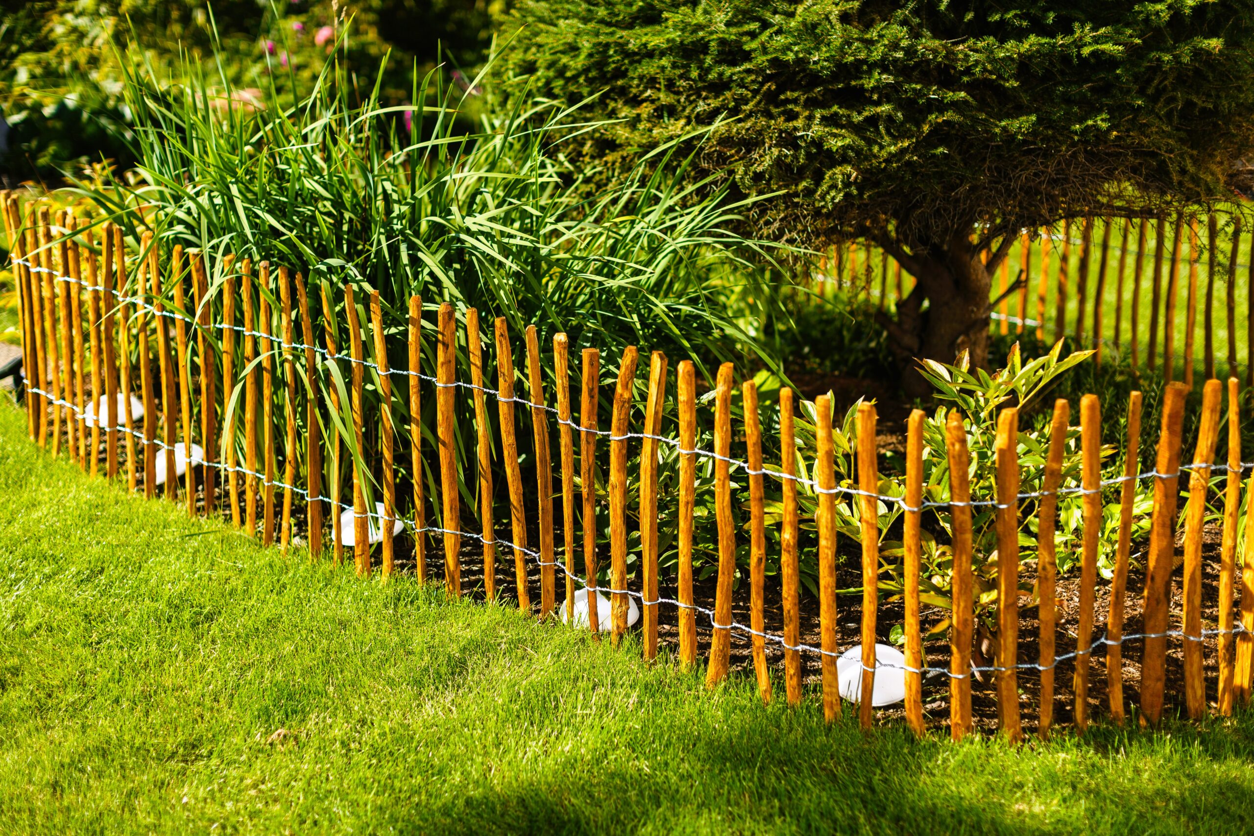 - Sztachetki: łupane, połączone ocynkowanym drutem stalowym 1.8-2.0 mm.