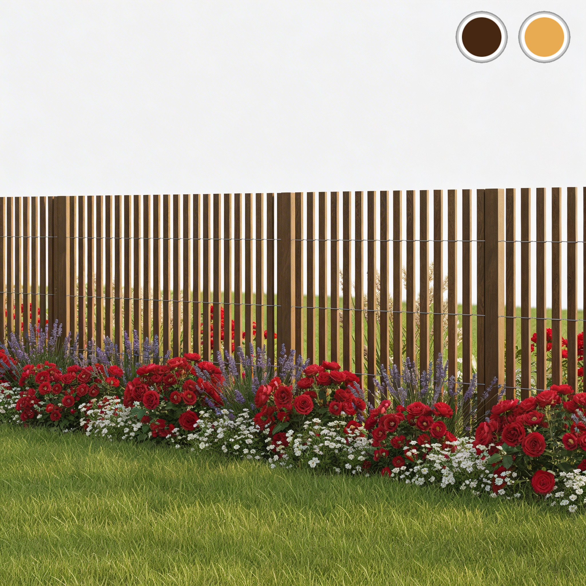 Wykonany z wysokiej jakości desek lamelowych, nasz płot charakteryzuje się nie tylko solidnością, ale także wyjątkową odpornością na działanie warunków atmosferycznych. Kolor nadaje mu elegancki i ciepły wygląd, który harmonijnie współgra z zielenią roślinności, tworząc przytulny klimat w Twoim ogrodzie.