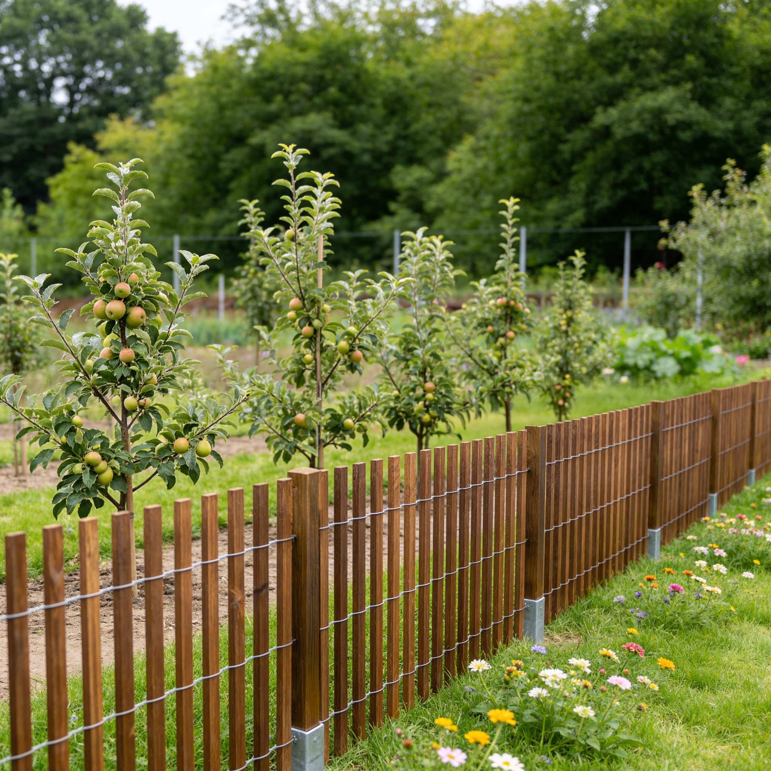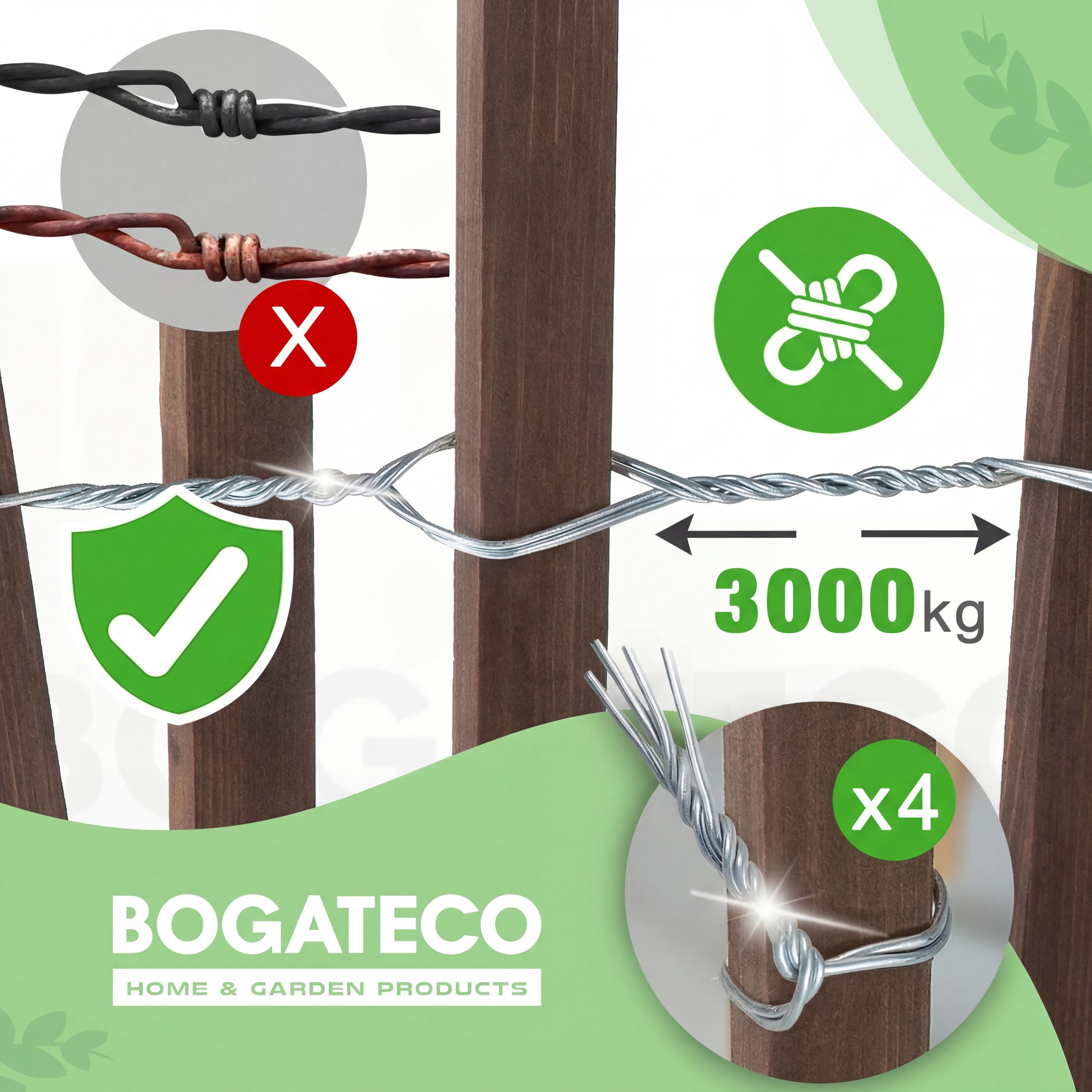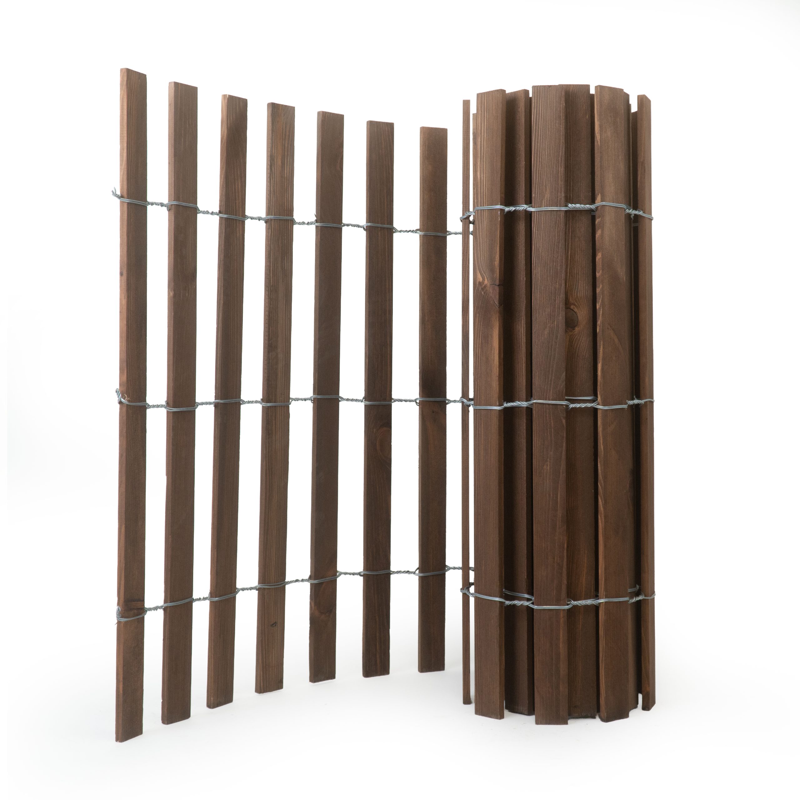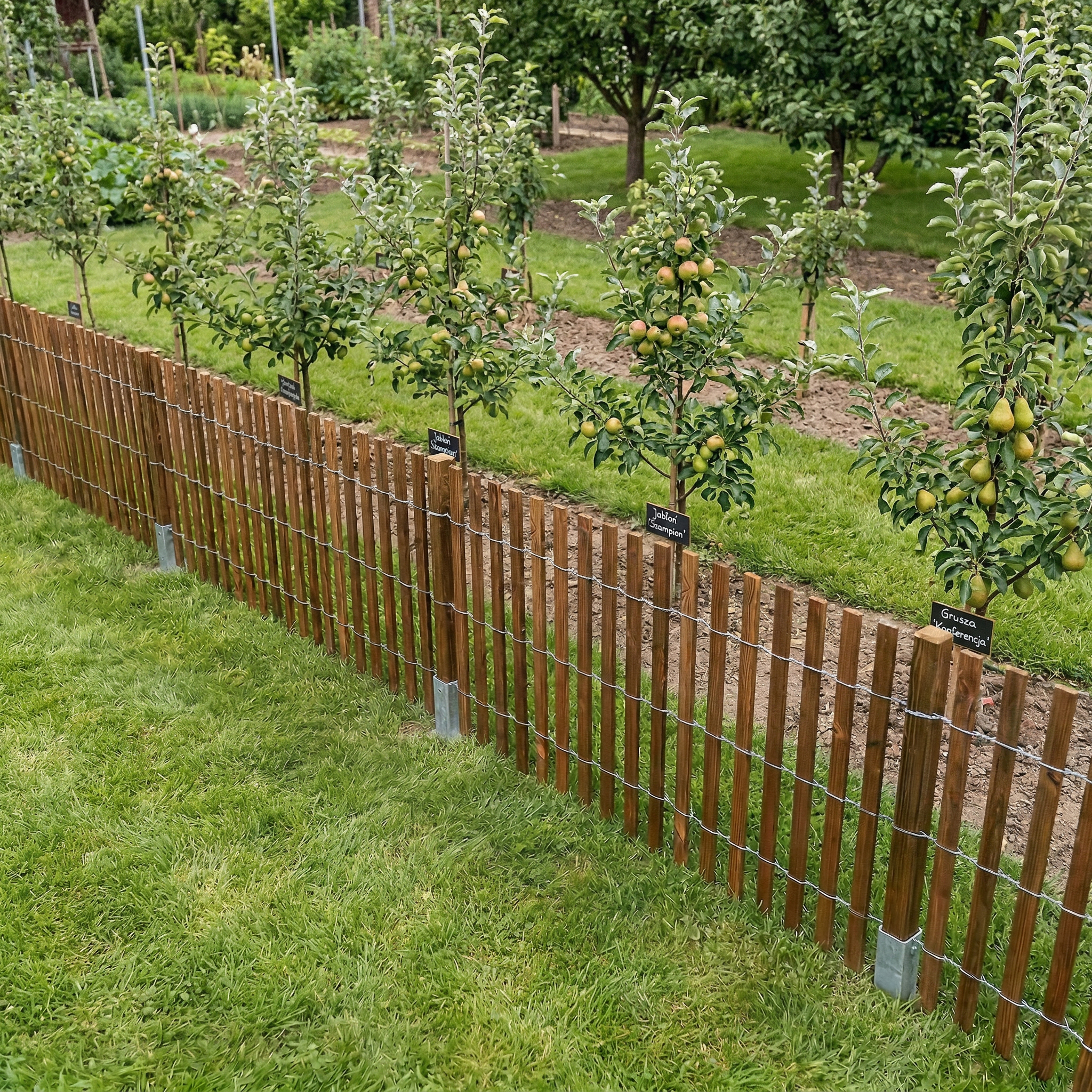 - Sztachetki: sosnowe, połączone ocynkowanym drutem stalowym 1.8-2.0 mm.