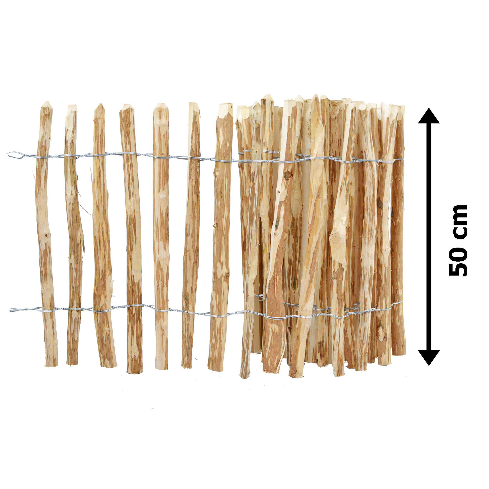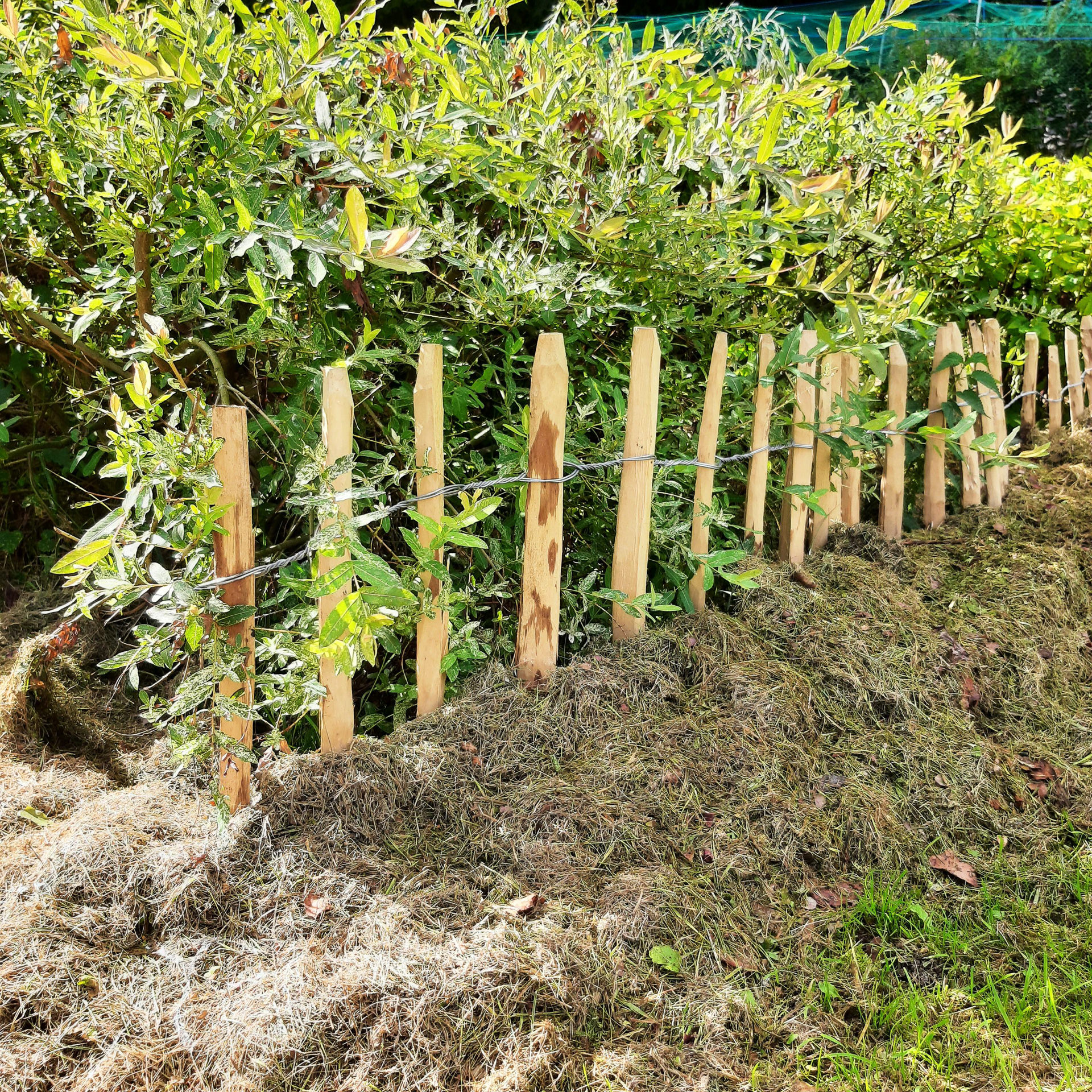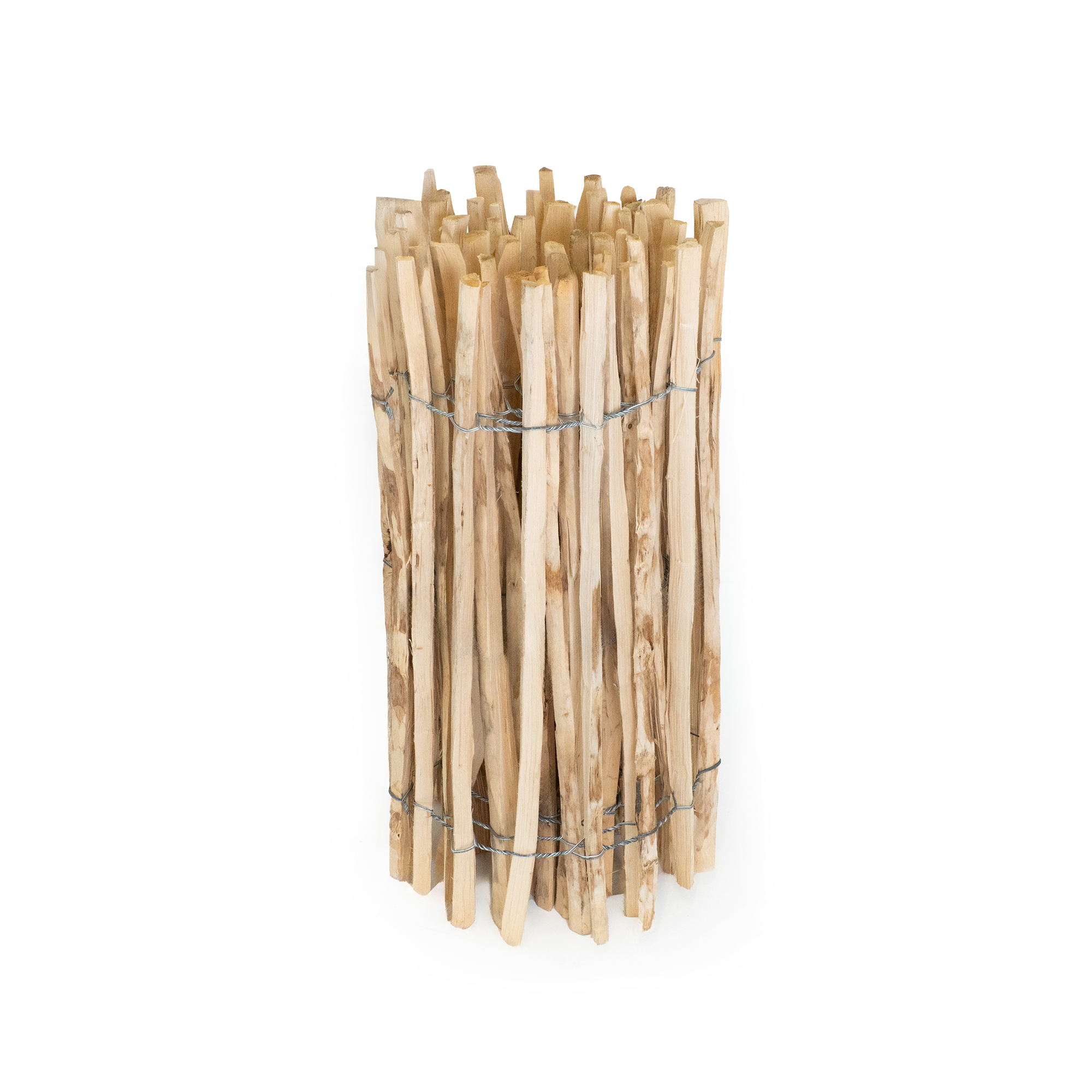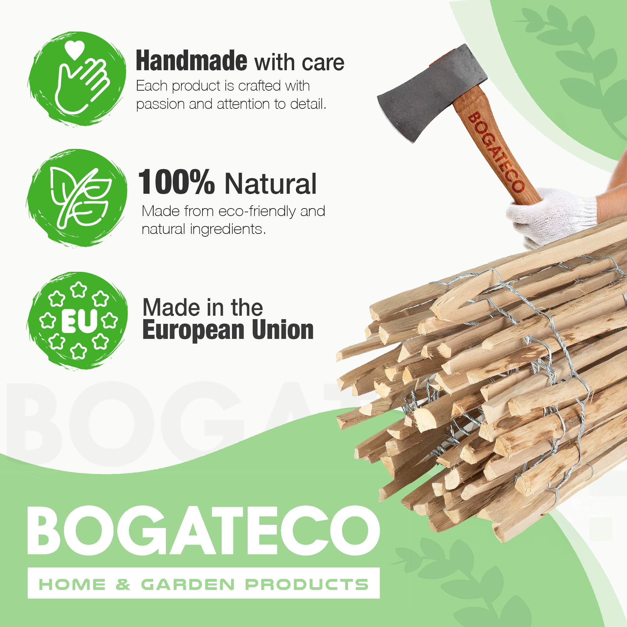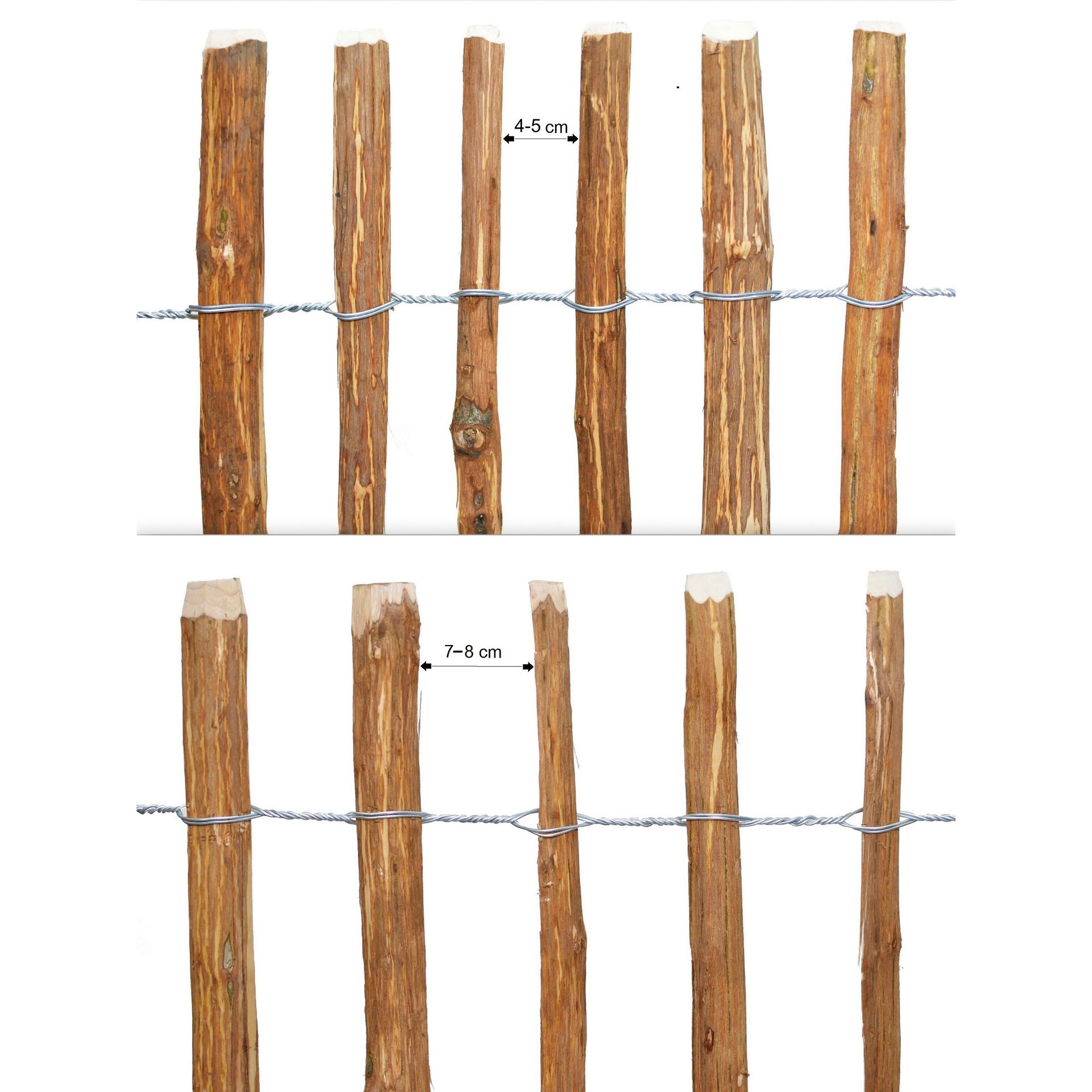 - Sztachetki: łupane, połączone ocynkowanym drutem stalowym o grubości 1,8–2,0 mm, co zapewnia trwałość i stabilność konstrukcji.