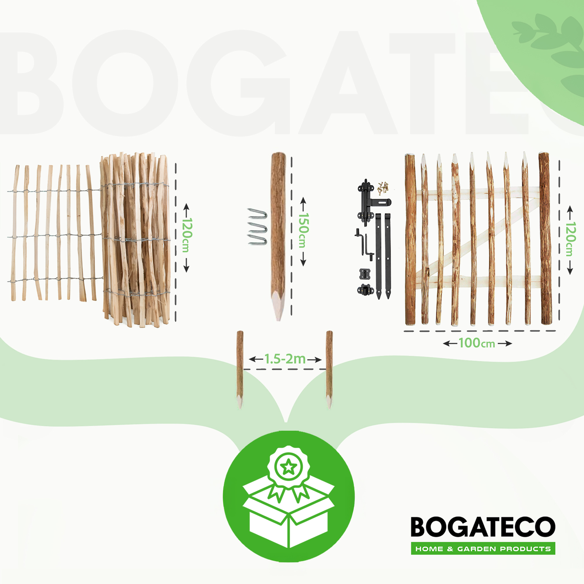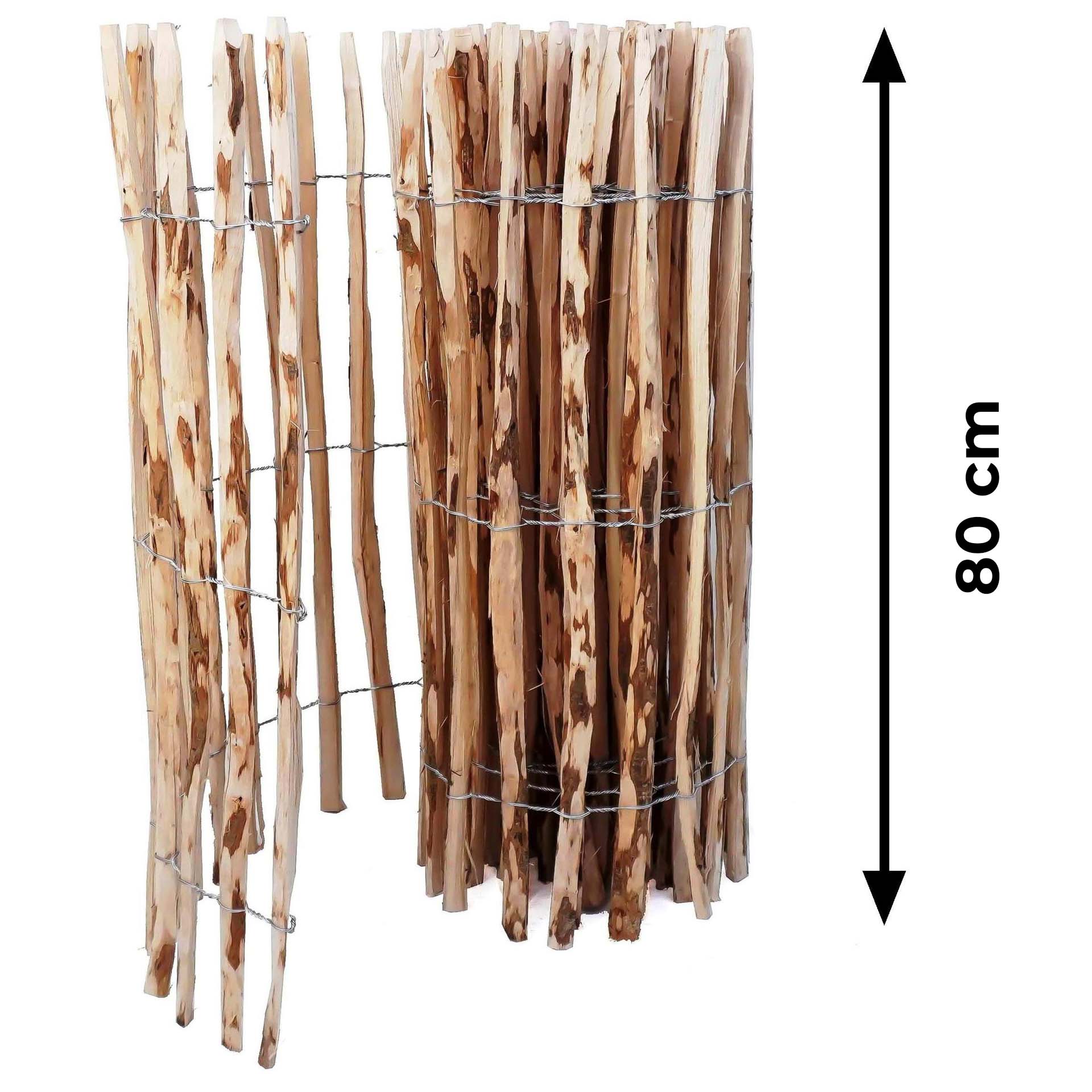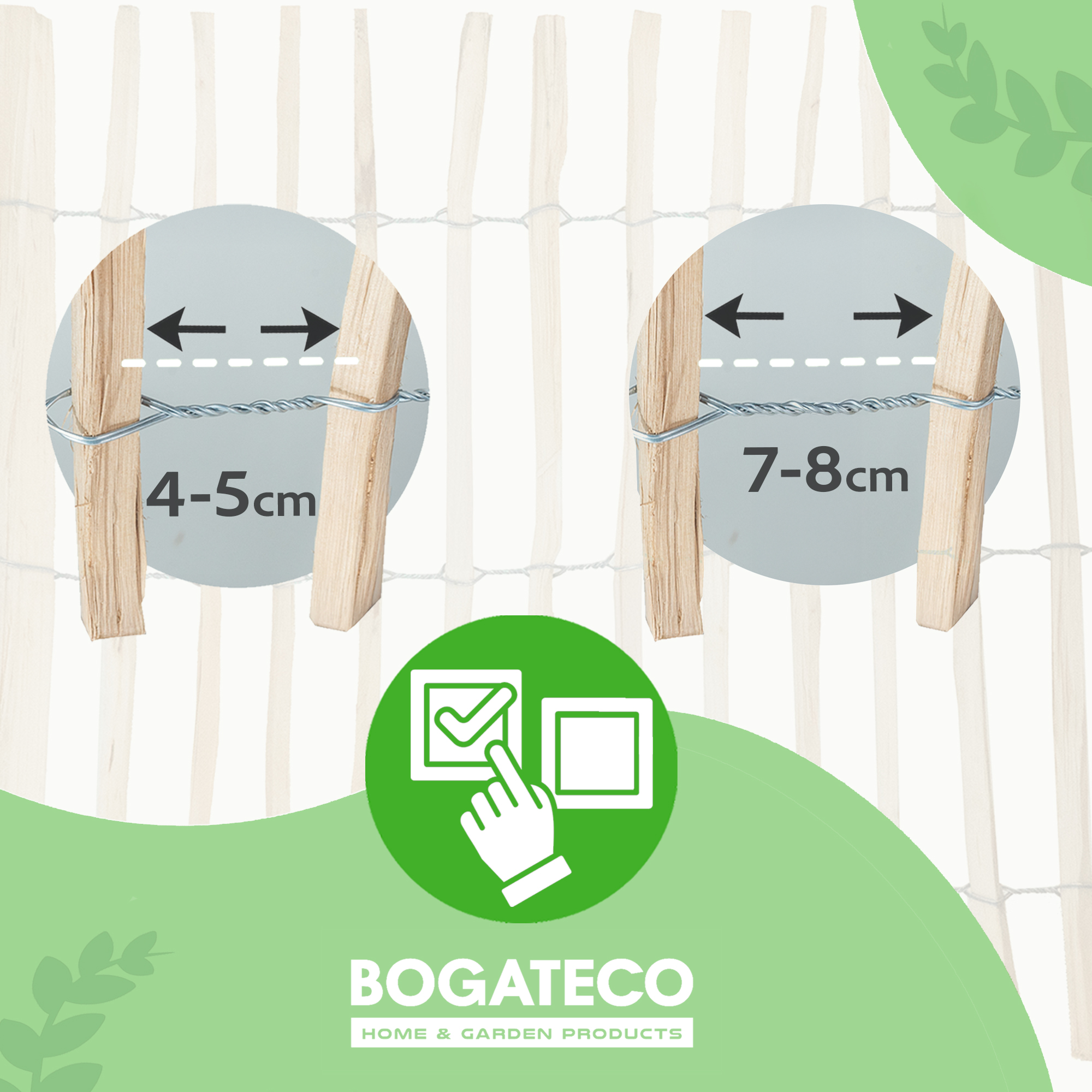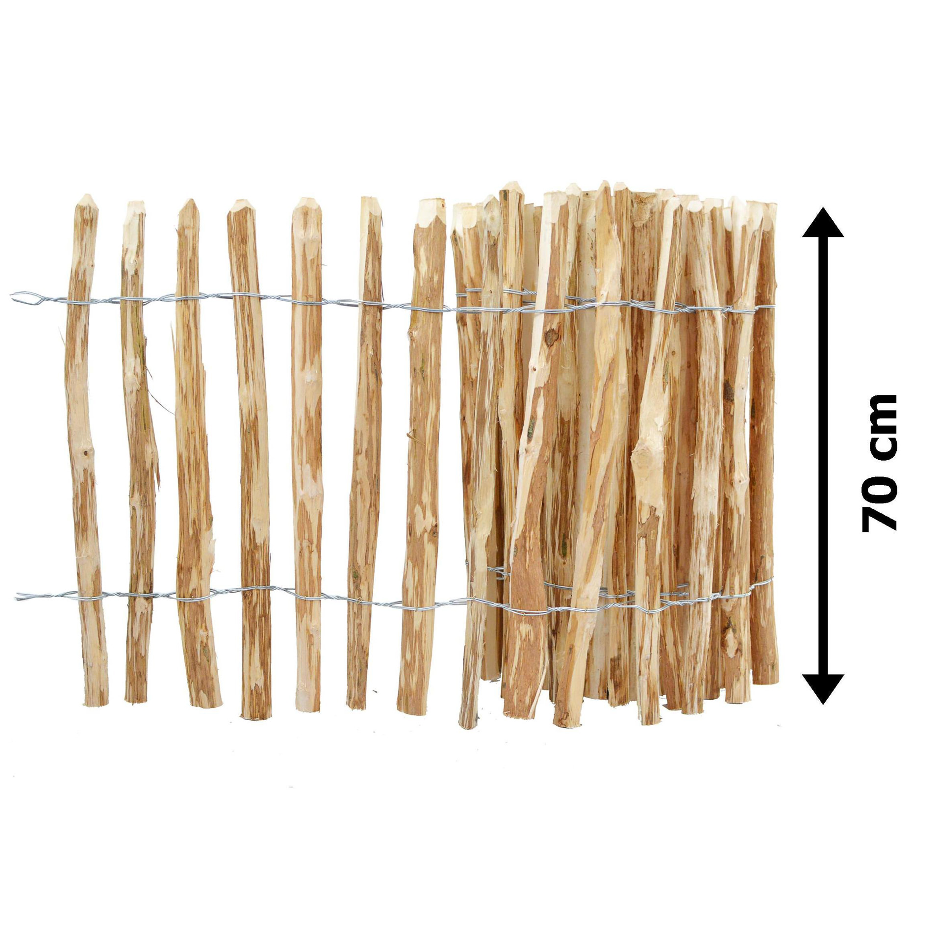 - Sztachetki: łupane, połączone ocynkowanym drutem stalowym o grubości 1,8–2,0 mm, co zapewnia trwałość i stabilność konstrukcji.