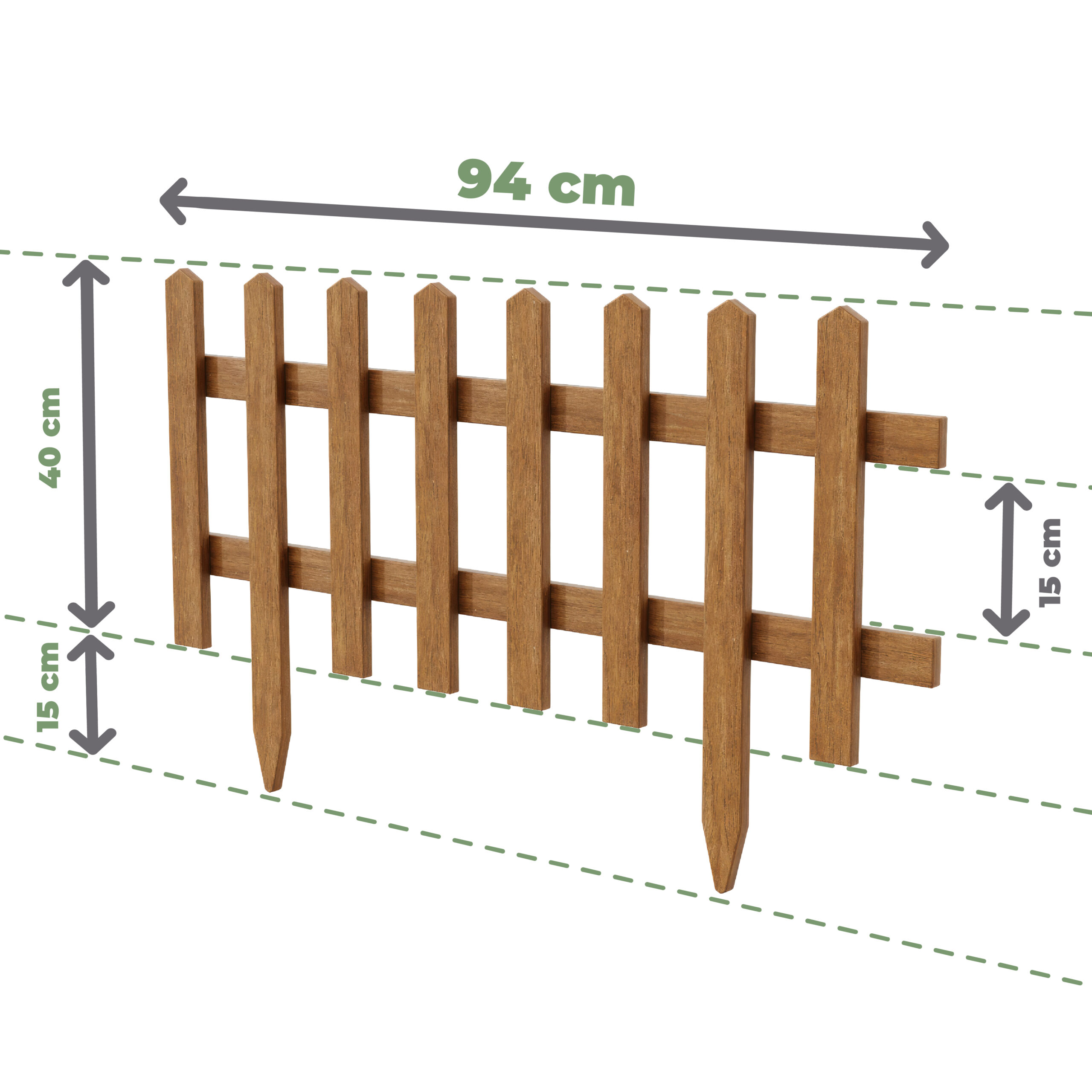 Prosta konstrukcja pozwala na szybki i bezproblemowy montaż – wystarczy wbić płotek w ziemię, a zaostrzone końce sztachetek ułatwią stabilne osadzenie.