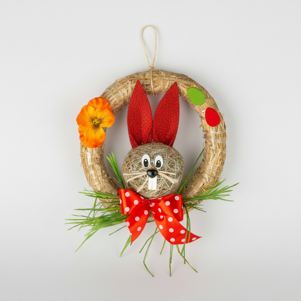 Ręcznie wykonana dekoracja wielkanocna – zajączek z doniczką (6 kolorów)