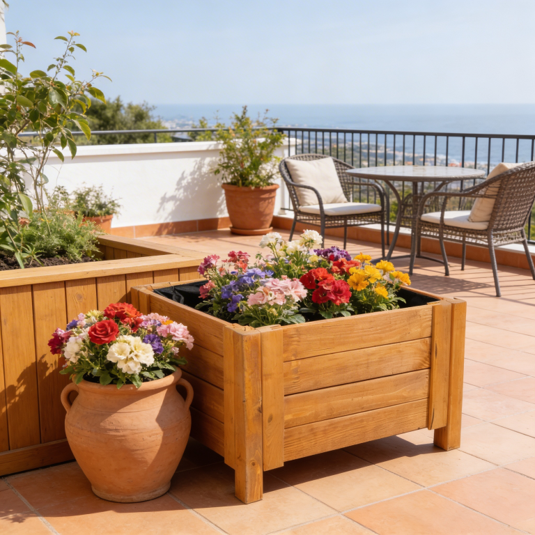 Drewniana donica tarasowa