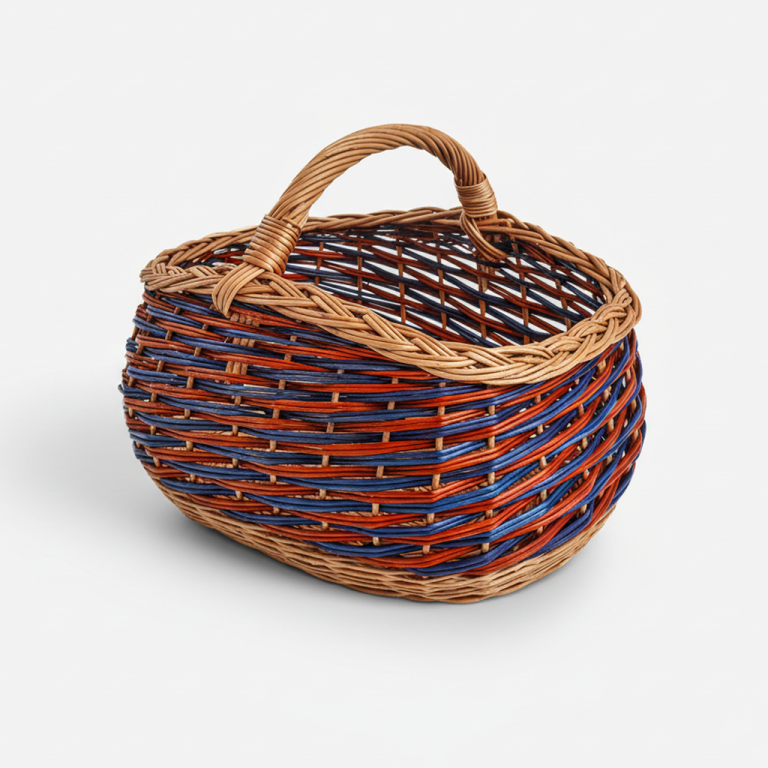Kosz z wikliny jest to produkt multi-funkcjonalny. Można go używać na codzienne zakupy, na grzyby, piknik czy użyć jako kosz prezentowy. Jest to koszyk wiklinowy idealnie nadający się do przewożenia czy przenoszenia drobnych rzeczy. Kosz wykonany w całości ręcznie przez polskich rzemieślników, wykończony precyzyjnym i niezwykle dekoracyjnym splotem “warkocz”.
