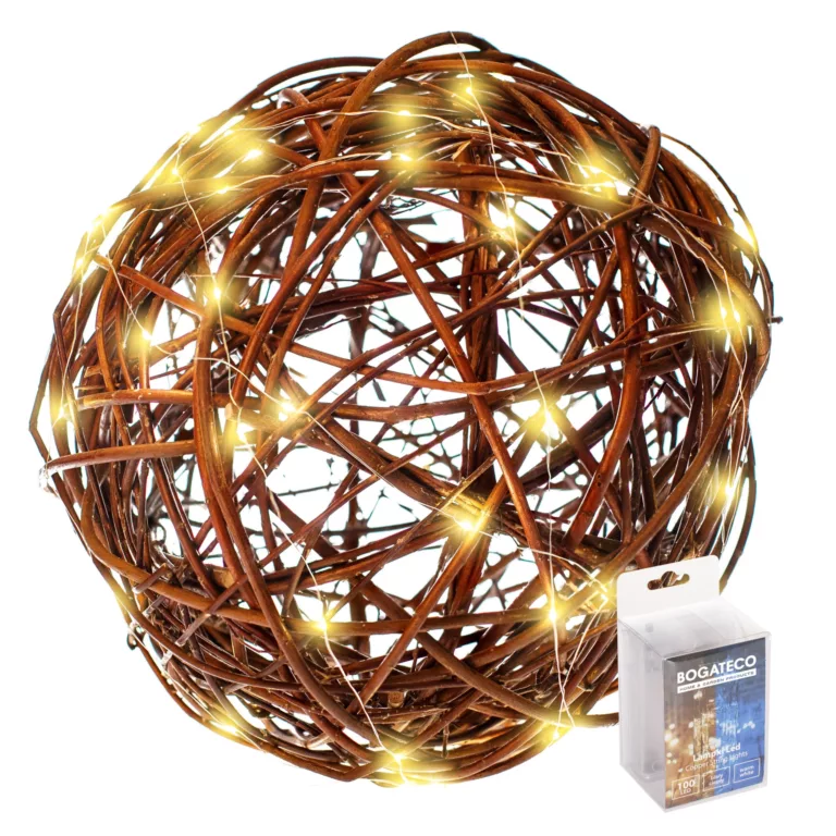 Kula wiklinowa jest to ręcznie wypleciona ozdoba wykonana z młodych pędów wikliny. Kule wiklinowe to doskonały element dekoracyjny, który świetnie się komponuje w każdym ogrodzie, tarasie czy balkonie. Kula wykonana z wikliny idealnie nadaje się do podświetlenia tworząc w ogrodzie niesamowity klimat. Oferujemy kule w czterech najbardziej uniwersalnych rozmiarach: 20 cm, 30 cm, 40 cm 50 cm średnicy. W zależności od rozmiaru waga kul wynosi odpowiednio 0,2kg, 0,5kg, 1kg i 1,5 kg. Efektowny wygląd kul wiklinowych ociepla i upiększa otoczenie ogrodu, dodaje uroku, stwarzając wspaniałe warunki do odpoczynku i relaksu. Kula wiklinowa jest wyrobem naturalnym, bezpiecznym dla środowiska, odpornym na wahania temperatur. W zestawie wraz z kulą wykonaną z wikliny znajdują się światełka LED (odpowiednio 20, 30, 40 lub 50 micro LED) Z uwagi na to, że jest to wyrób ręcznie robiony, prosimy o tolerancję wymiaru +/- 2 cm.
