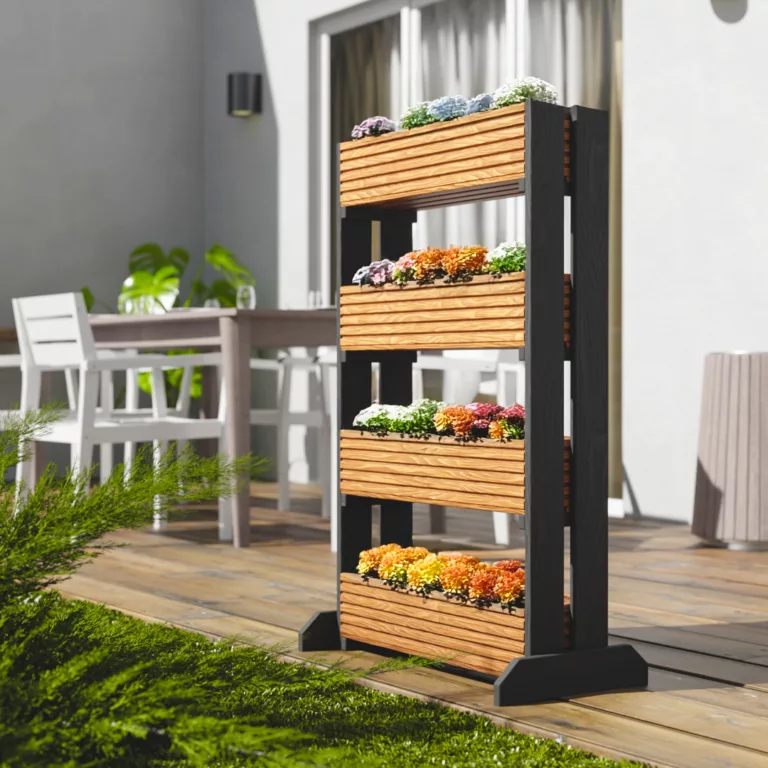 5 WARIANTÓW KOLORYSTYCZNYCH - Dostępne w 5 różnych kolorach dla różnych opcji dekoracji. Idealnie pasuje do nowoczesnych tarasów oraz balkonów. DOSTĘPNE Z DWOMA WARIANTAMI ILOŚCI POZIOMÓW : na 3 lub 4 doniczki. Możliwość dostosowania do różnych warunków. Idealnie nadają się na balkony, tarasy. WKŁAD Z TWORZYWA SZTUCZNEGO - chroni przed wyciekiem wody, dlatego nadaje się również do użytku w pomieszczeniach zamkniętych. Idealny do sadzenia ziół , kwiatów. Można stosować zarówno wewnątrz jak i na zewnątrz. WSZECHSTRONNE ZASTOSOWANIE - wykorzystaj swoją kreatywność i sadź w niej wszystko od ziół po większe rośliny.