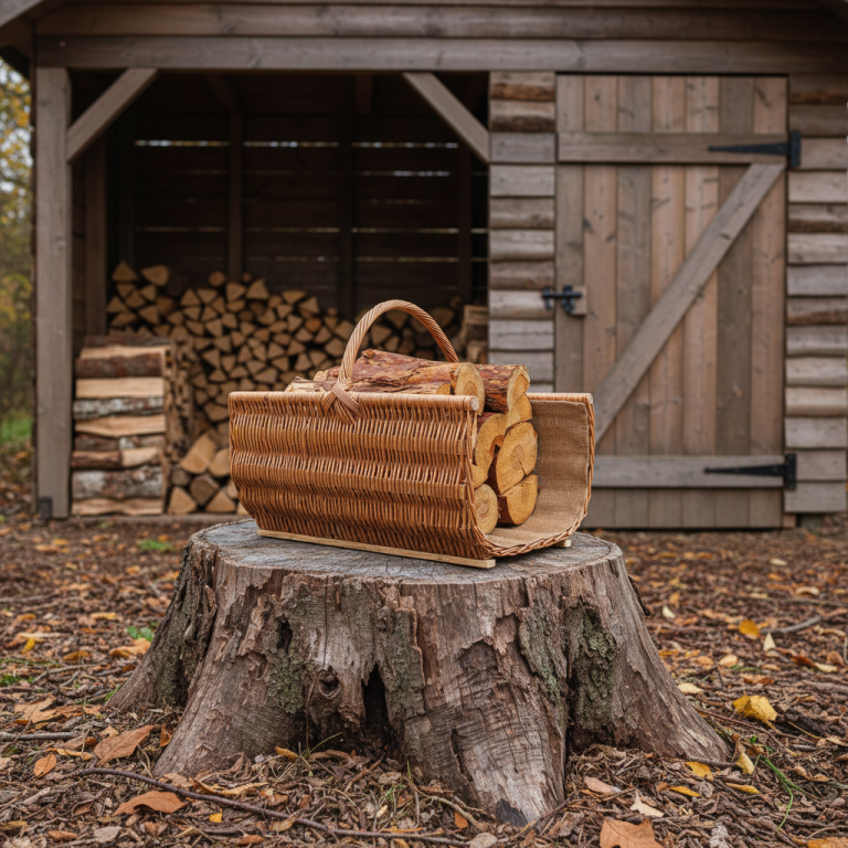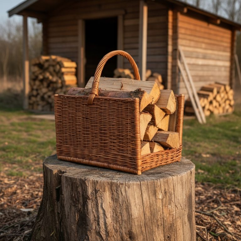 Kosz kominkowy wiklinowy – naturalny kosz na drewno z wyściółką jutową